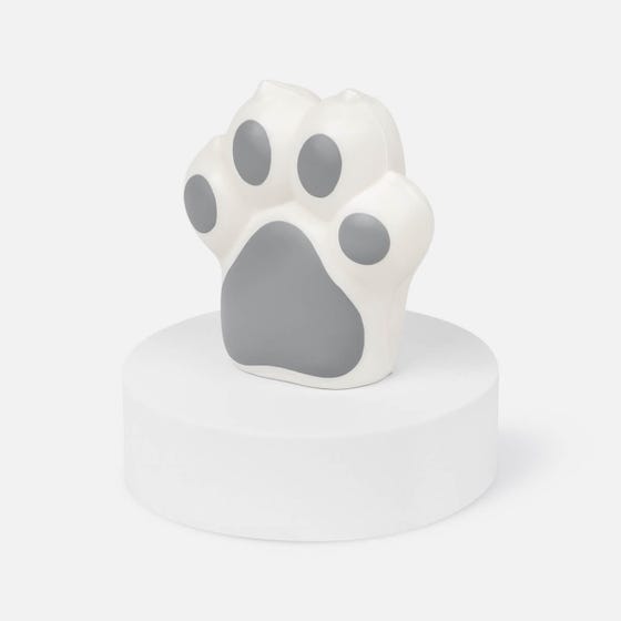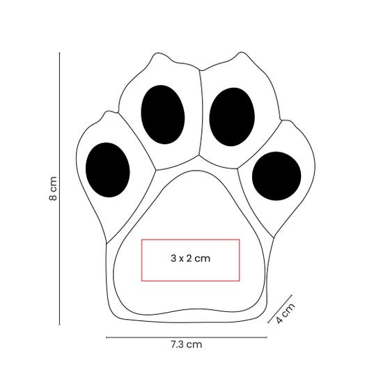 Figura antiestrés con diseño de huella de mascota.