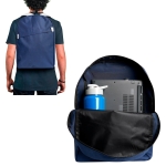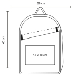 Mochila con compartimento principal, bolsa frontal con cierre, asa superior y tirantes ajustables.