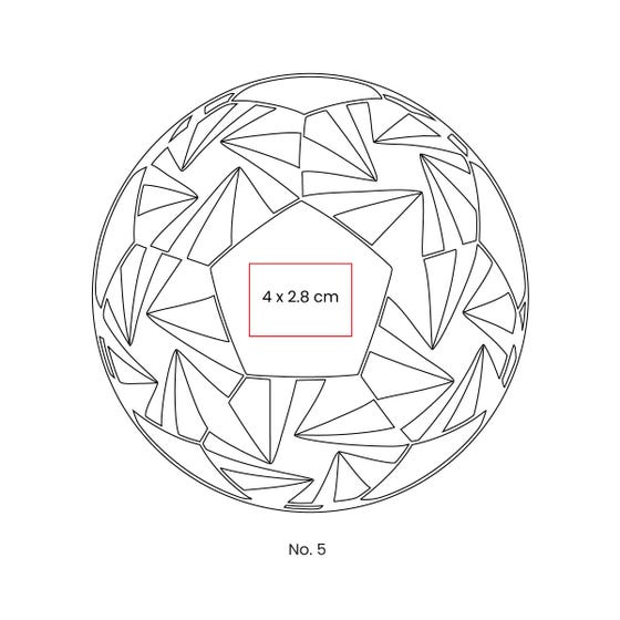 Balón de fútbol No. 5 con 35 gajos. Peso 400 gr. Cosido a máquina. Nivel máximo de presión 6-8 psi. Capa especial de PVC.