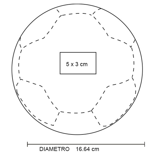 Balón de fútbol talla 2 con doble capa, compuesto por 32 paneles cosidos (hexágonos y pentágonos) y acabado texturizado. Presión recomendada: entre 2 y 4 psi.