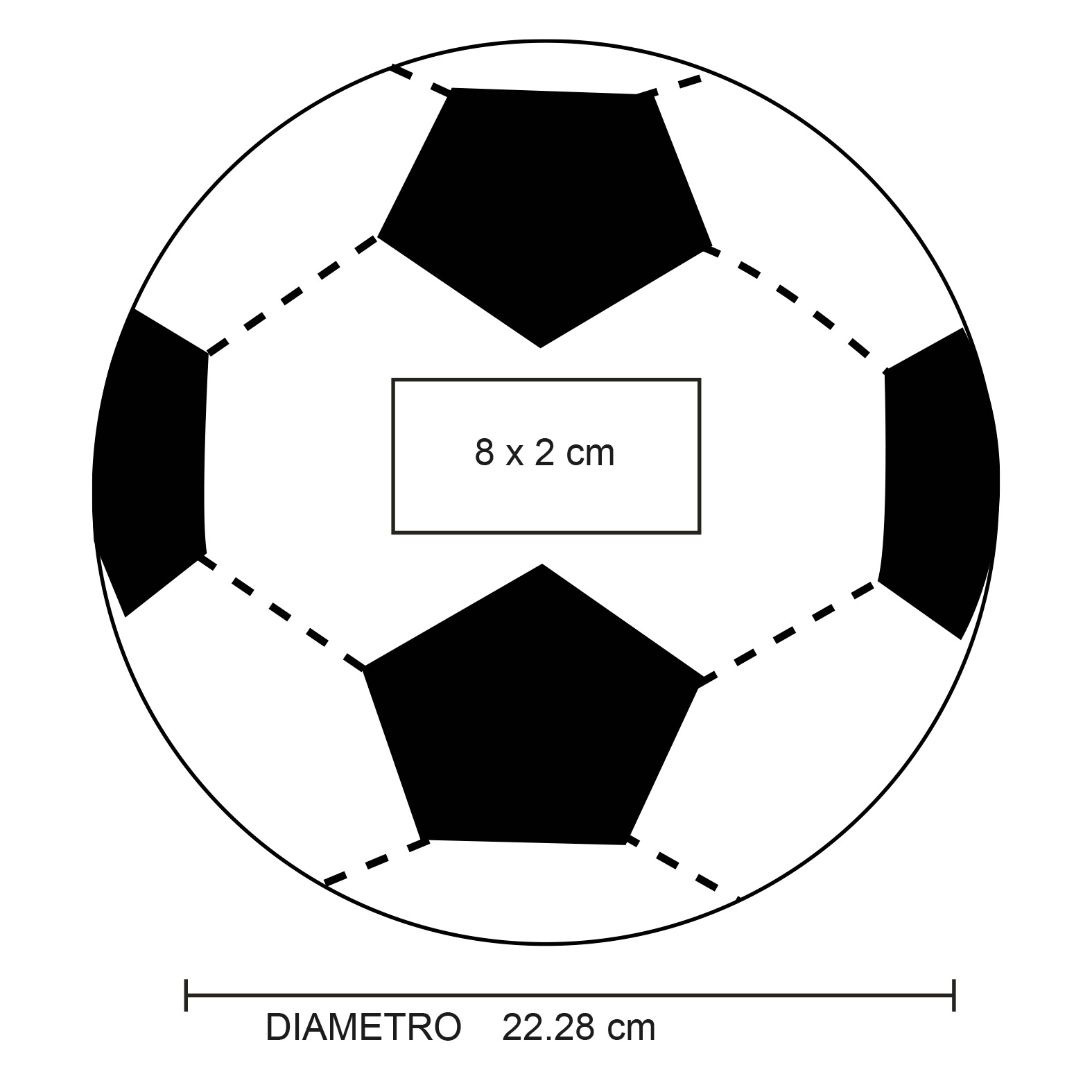 Balón de futbol talla 5, con 32 gajos cosidos a maquina (hexagonos y pentagonos), acabado texturizado e hilos de goma laminados para mayor resistencia. Presión recomendada: entre 6 y 8 psi.