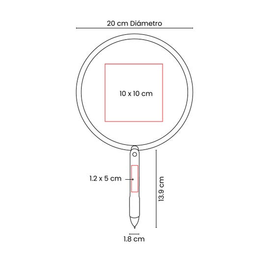 Área de impresión: Bolígrafo: 1.2 x 5 cm / Abanico: 10 x 10 cm