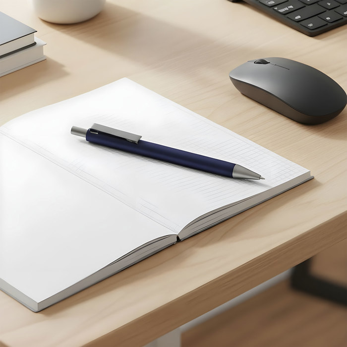 Boligrafo retráctil. Cuerpo metálico en diferentes colores. Acabado mate. Pulsador, clip y puntera de color gris gun metal. Tinta negra.