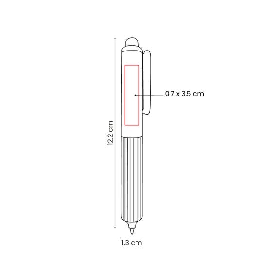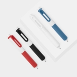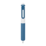 Bolígrafo de tinta de gel con grip de silicón antiderrapante. Su diseño destaca formas suaves y redondeadas. Mecanismo pulsador.