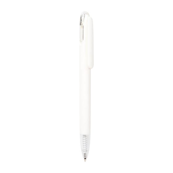 Bolígrafo de plástico con terminado rubber. Su contraste de material solido y translucido aportan un toque único a su diseño. Mecanismo pulsador.