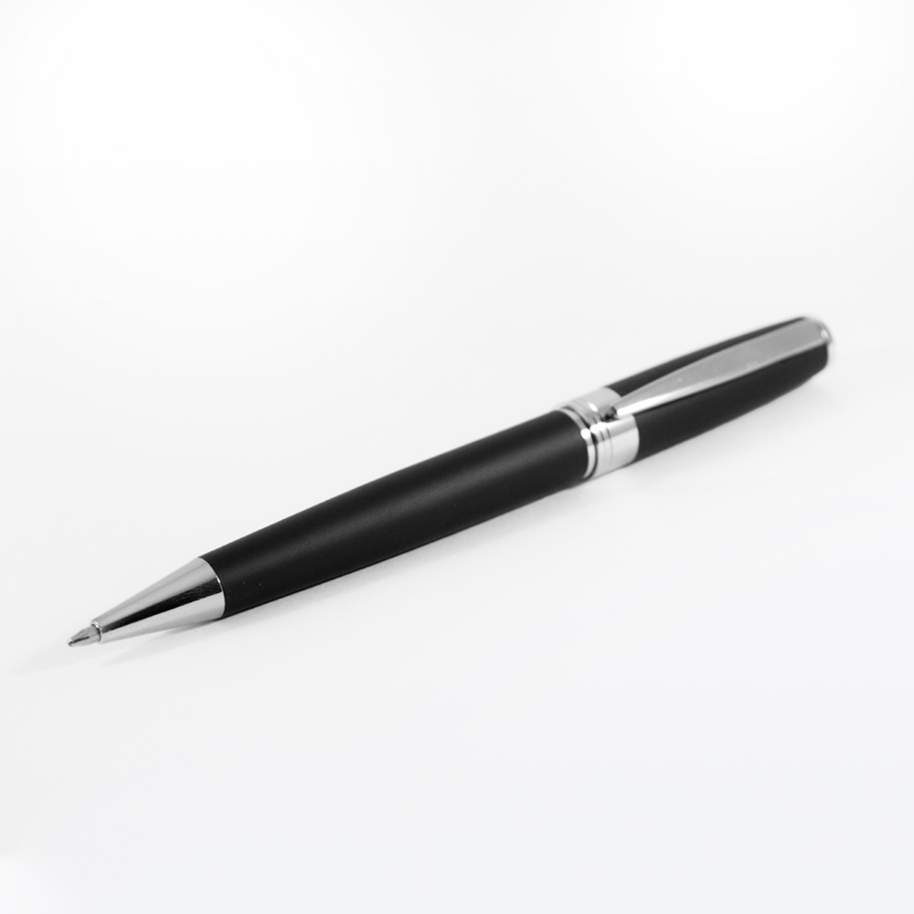 Bolígrafo metálico con mecanismo de giro. Incluye estuche.