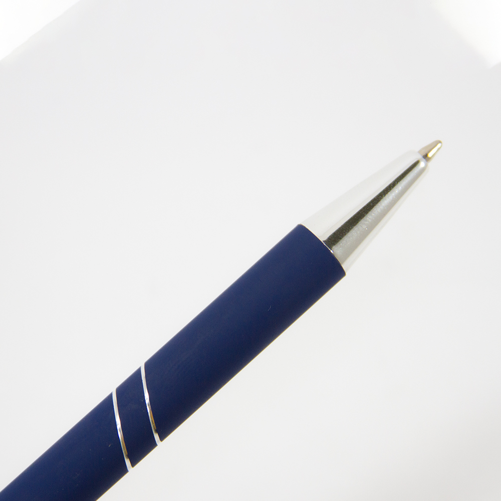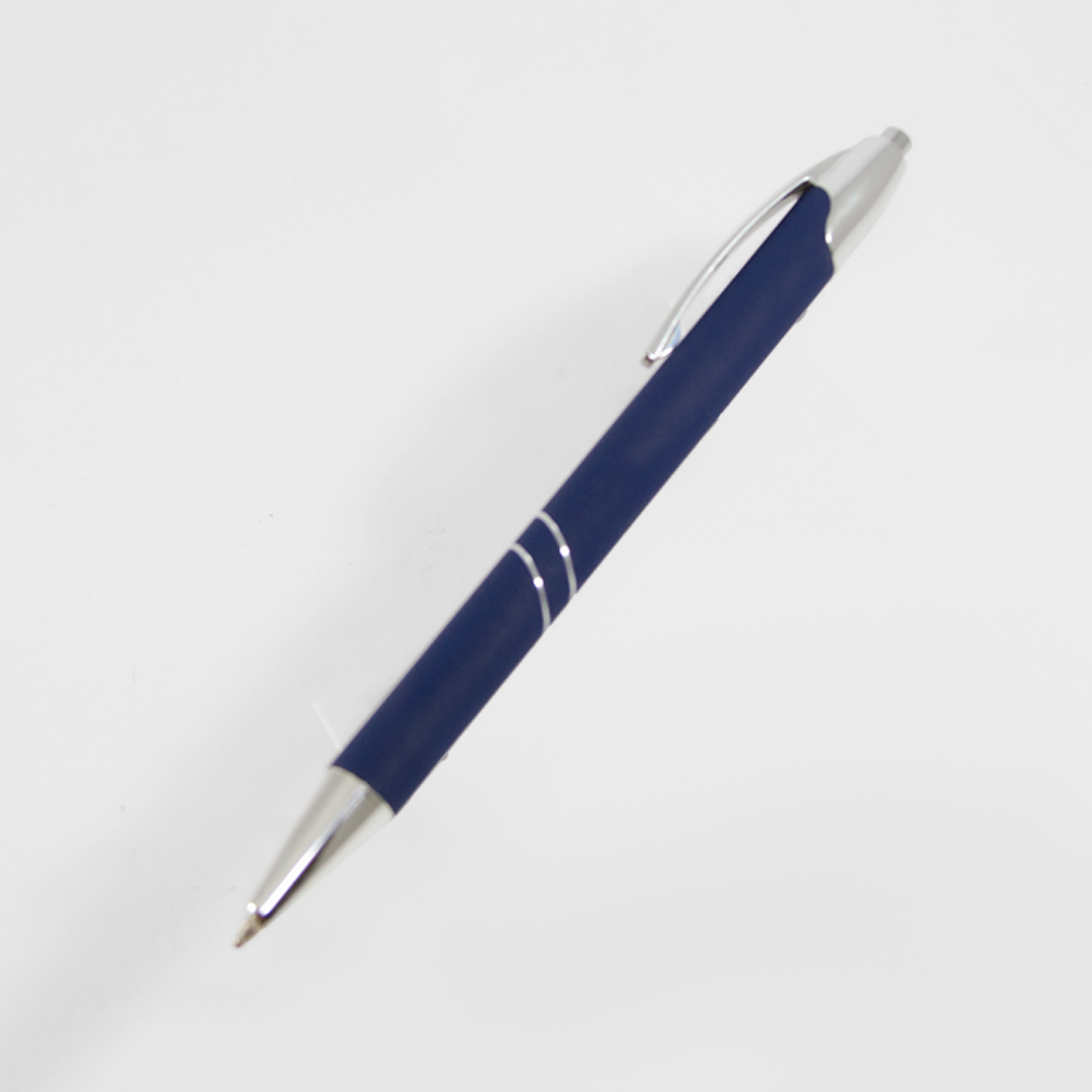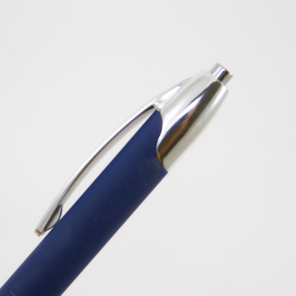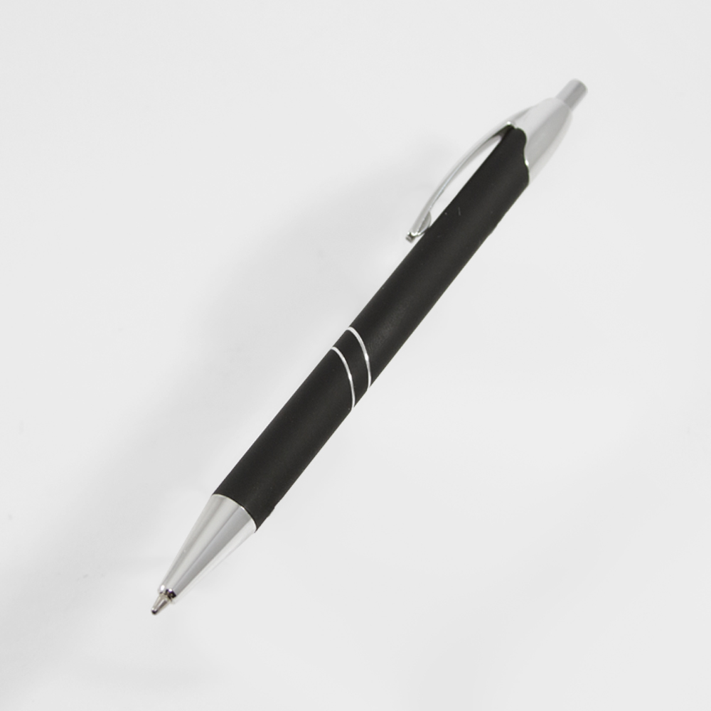 Bolígrafo de aluminio con recubrimiento rubber y mecanismo retráctil. Incluye funda de terciopelo.
