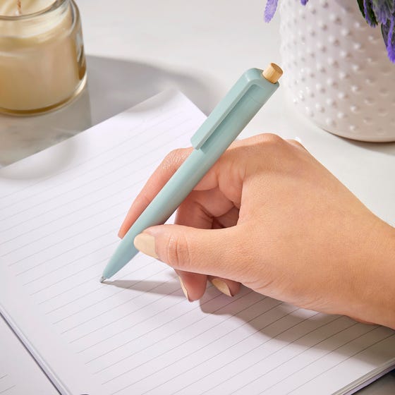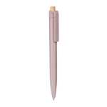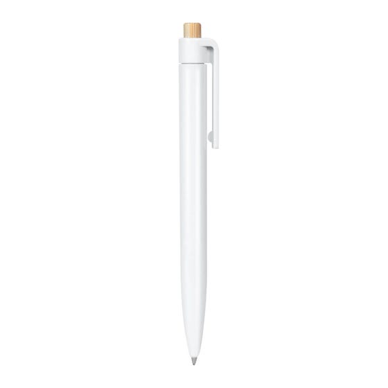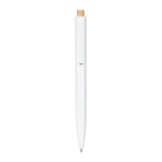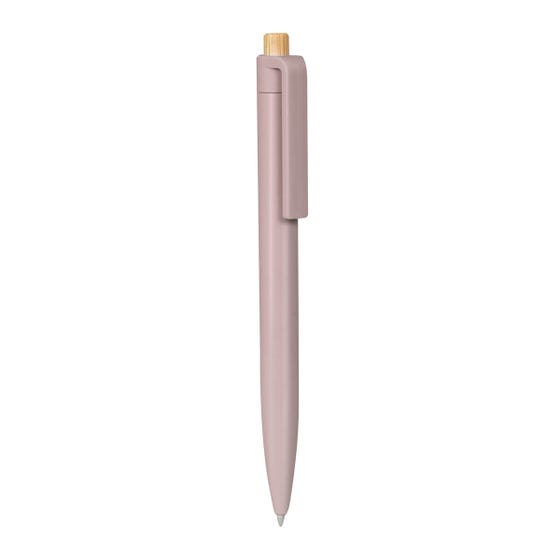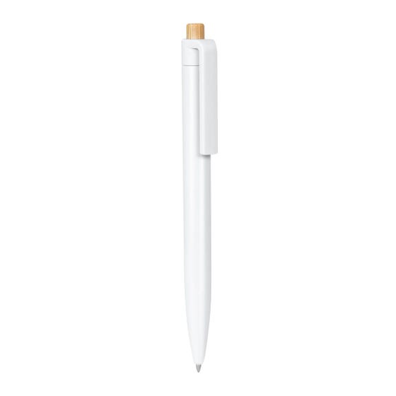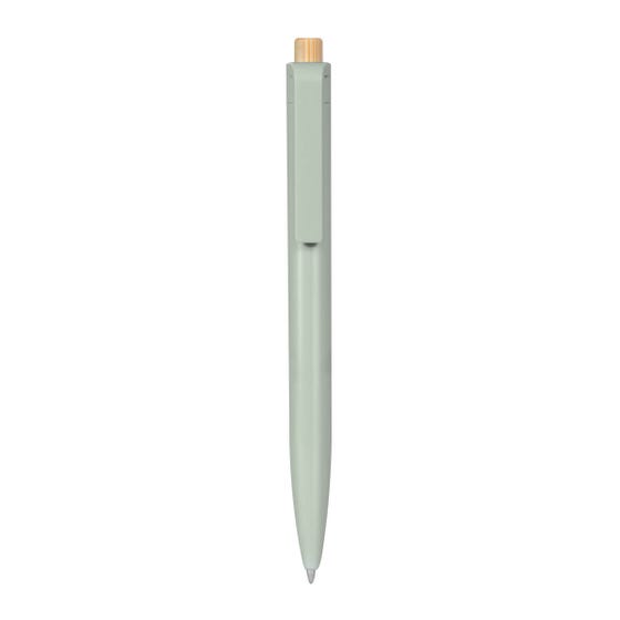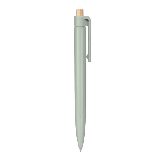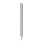 Bolígrafo con botón de madera que añade un toque ecológico. Mecanismo pulsador. Tinta negra.