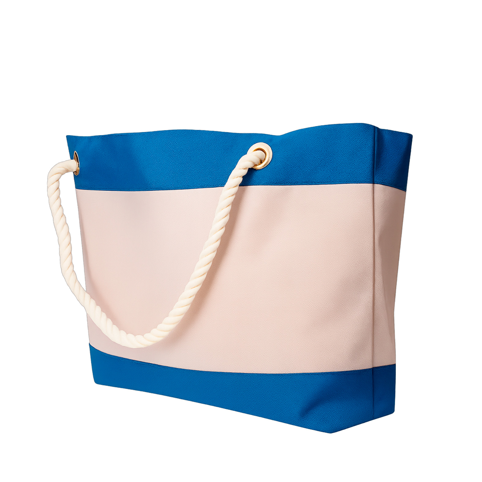 Bolsa de poliéster cosida con asas de algodón e interior forrado.