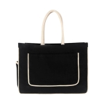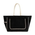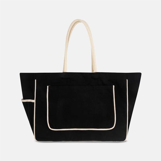 Bolsa oversize con fuelle. Cuenta con un bolsillo frontal, un amplio compartimento principal y una bolsa lateral. Se destaca por sus bordes en color natural, que le aportan un estilo auténtico. Incluye un pequeño bolsillo al interior y cierre con broche magnético. Ideal para vacaciones en resort.
