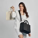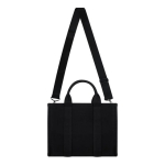 Bolsa compacta estilo Tote. Cuenta con dos asas pequeñas y redondeadas. Su compartimento principal incluye un cierre en la parte superior. Su correa de hombro es ajustable y removible, lo que te permite llevarla cruzada sobre el cuerpo o colgada del hombro. En su interior, encontrarás dos bolsillos que te permiten organizar tus pertenecias de manera eficiente, así como un bolsillo adicional con cierre para guardar objetos más pequeños y valiosos.