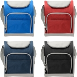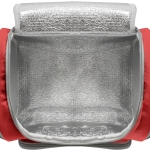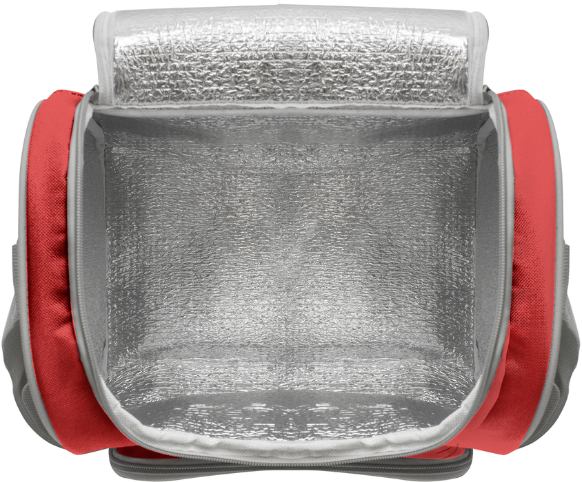 Capacidad 16l. Poliester 600D. Bolso térmico. Interior totalmente recubierto de aluminio. Bolsillo frontal, correa extensible y cierres metálicos con tira cierres de cordón.