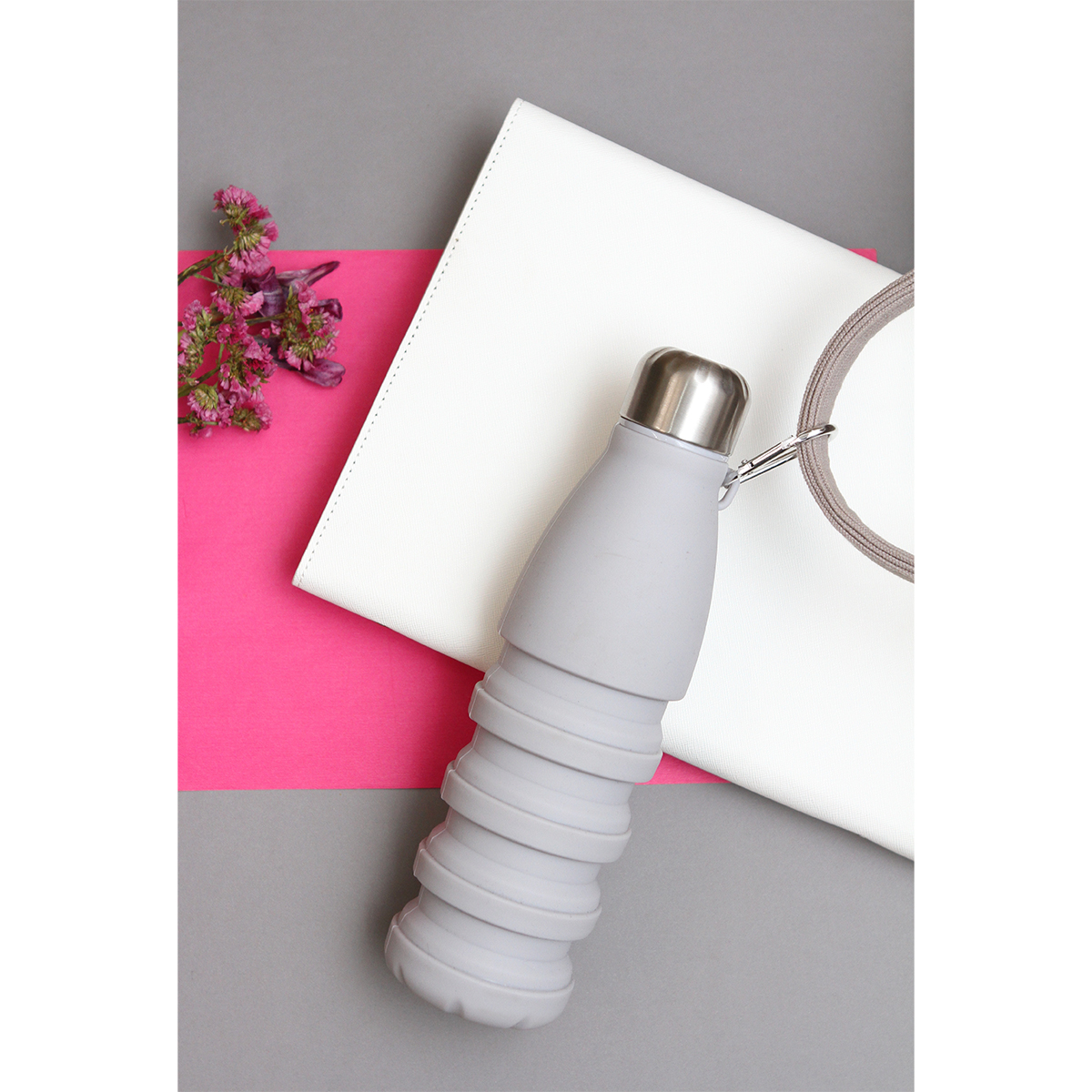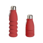 Botella retráctil fabricada en silicón, con capacidad de 550 ml, diseño en color sólido, tapa y arnés fabricados en acero inoxidable. Incluye mosquetón. Este termo te acompaña a donde quieras, por su gran practicidad.
