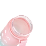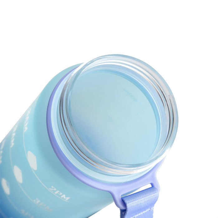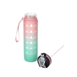 Botella deportiva motivacional. Botella de colores pastel en degradé bicolor con acabado frost. Tapa plástica combinada en color negro con un color de la botella. Apertura rápida, boquilla transparente rebatible y popote incluído. Correa del mismo color de la botella.