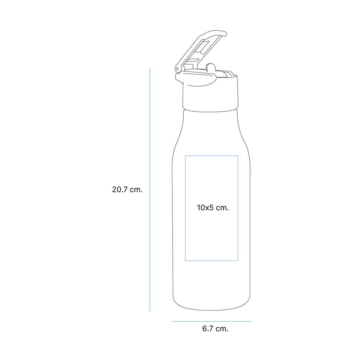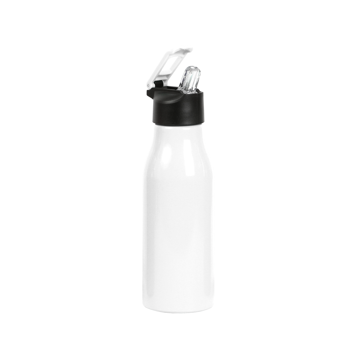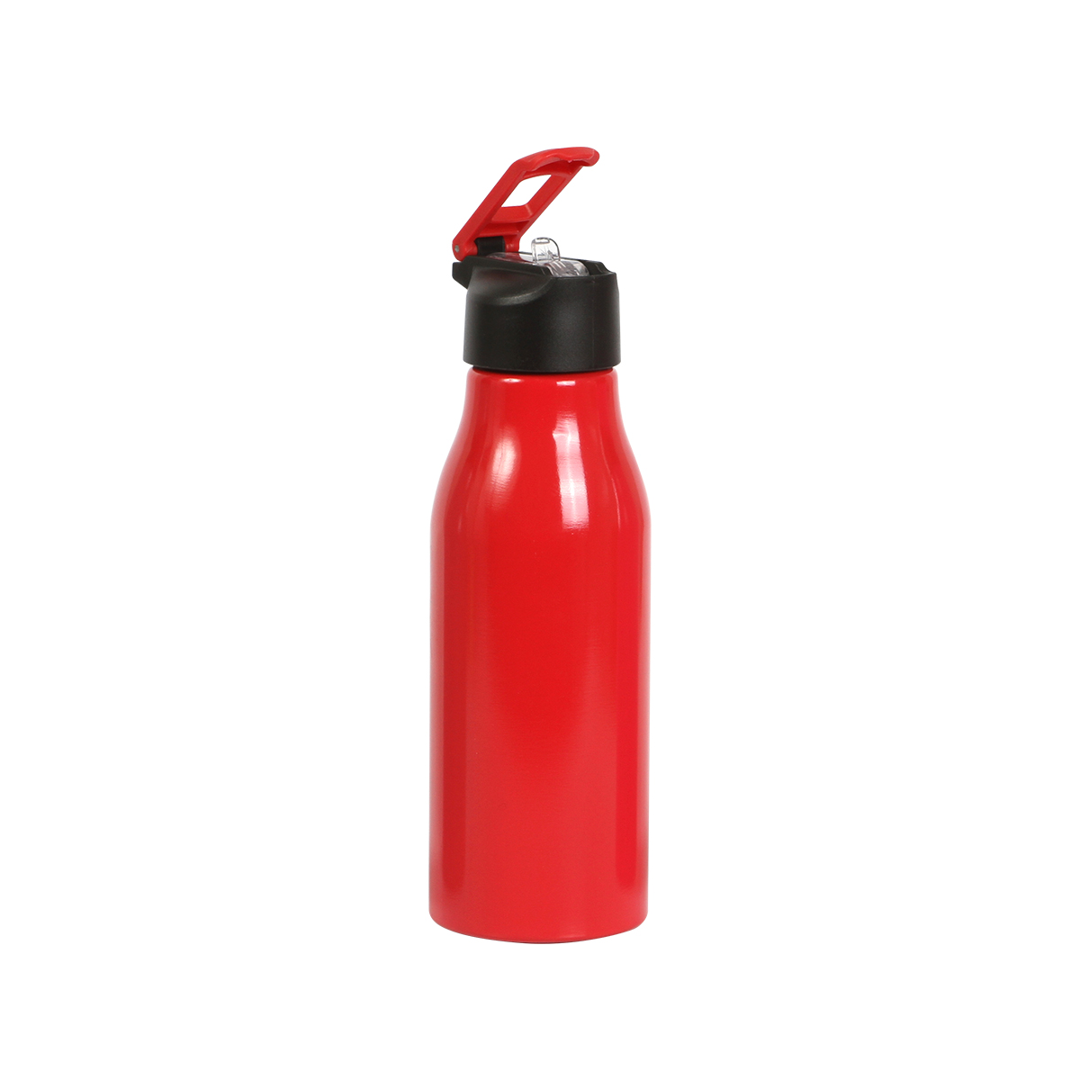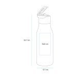 Botella de aluminio con revestimiento de color en el exterior y terminado brillante. Tapa de plástico, el popote puede contraerse lo que ayuda a mantener seguro el líquido de la botella. Capacidad de 650 ml. (22 onzas). Fabricado en materiales de grado alimenticio libre de BPA.