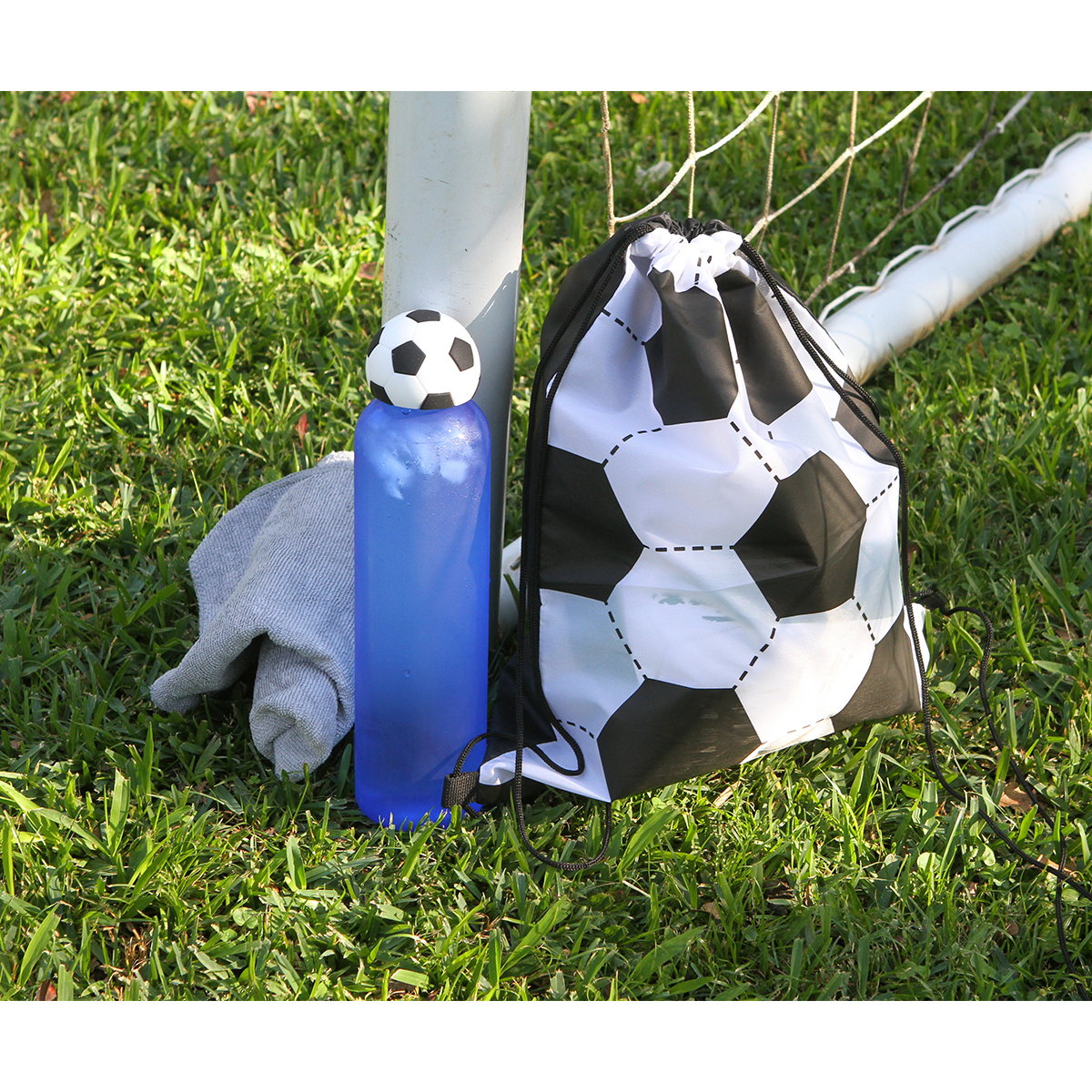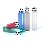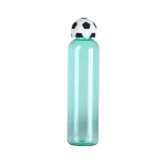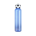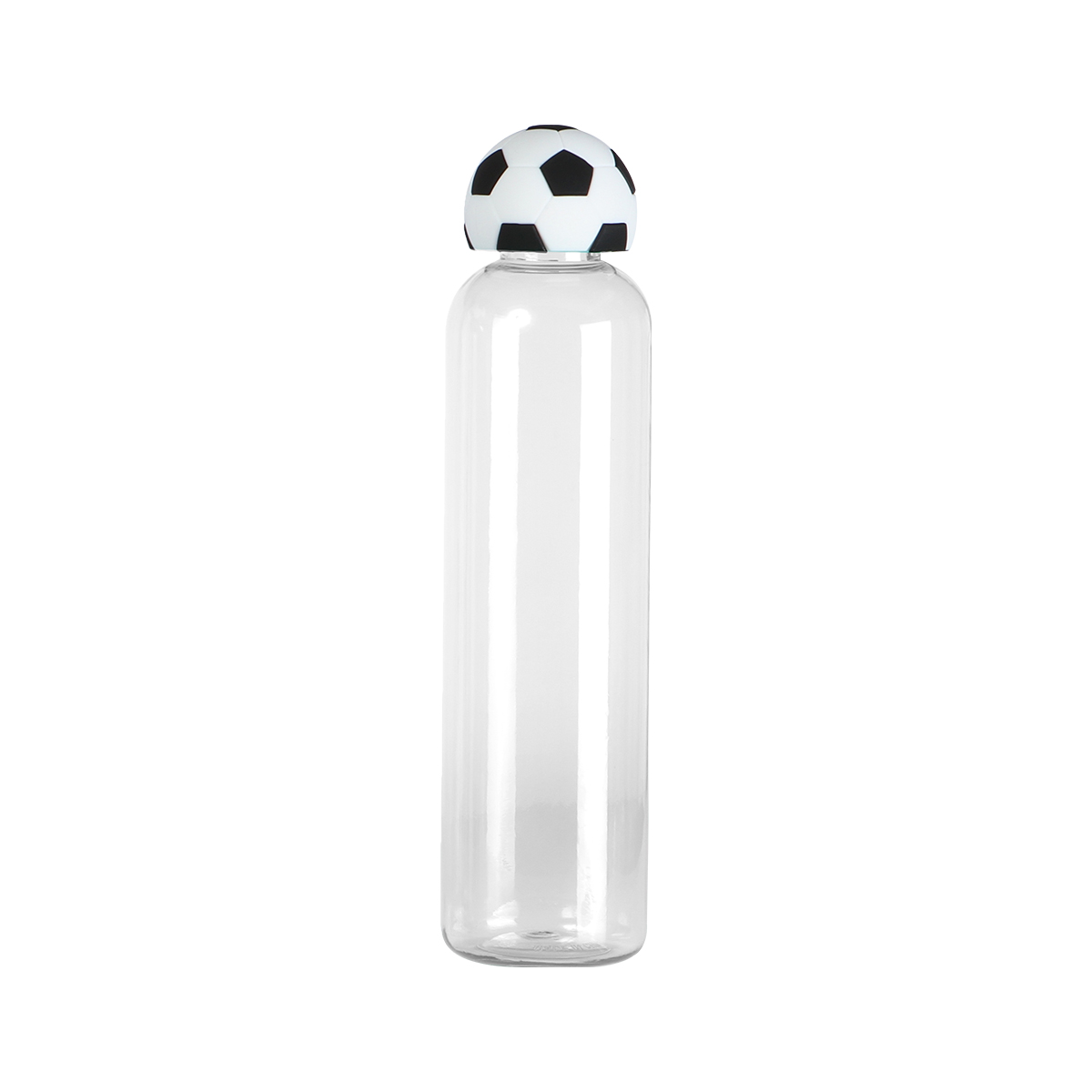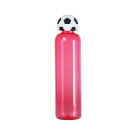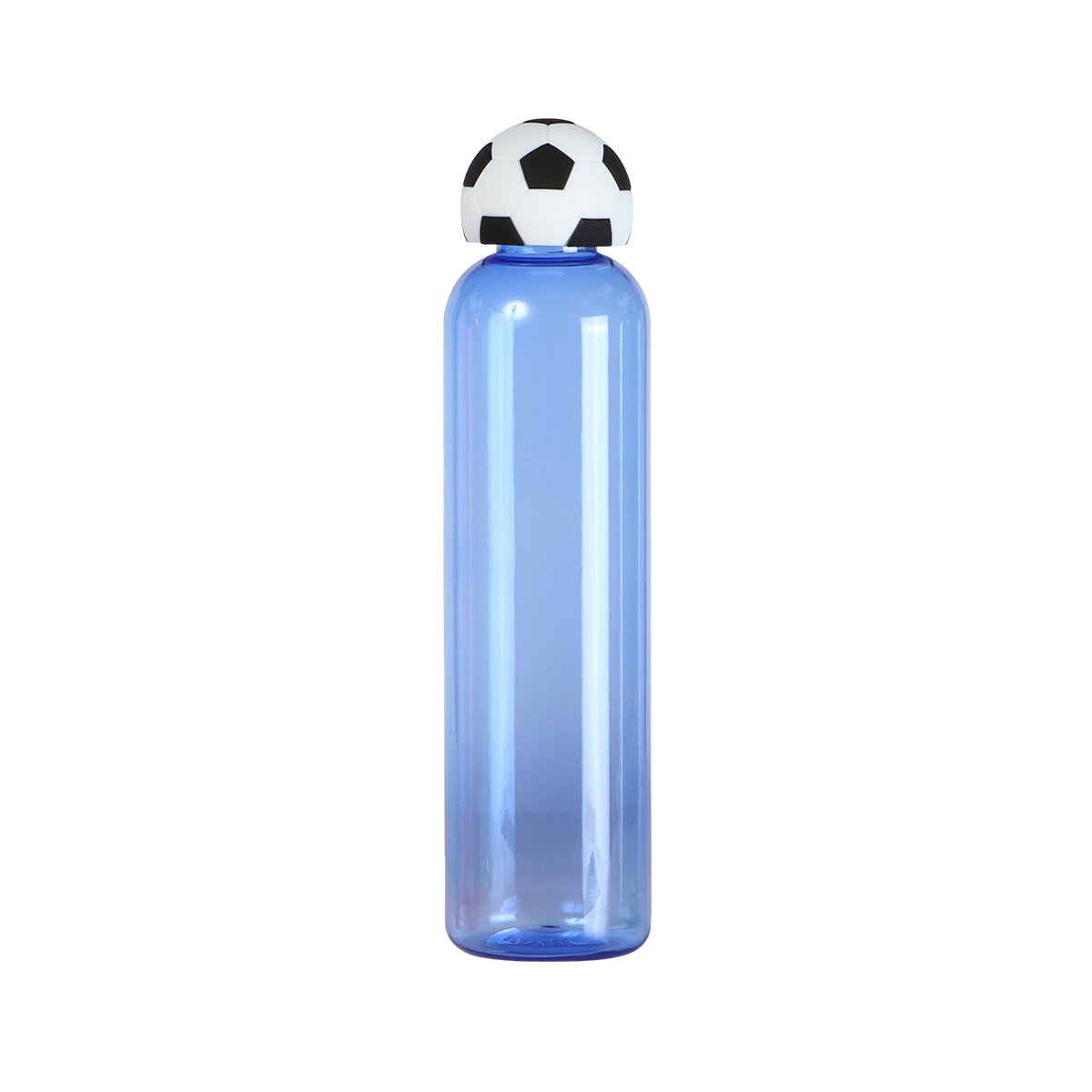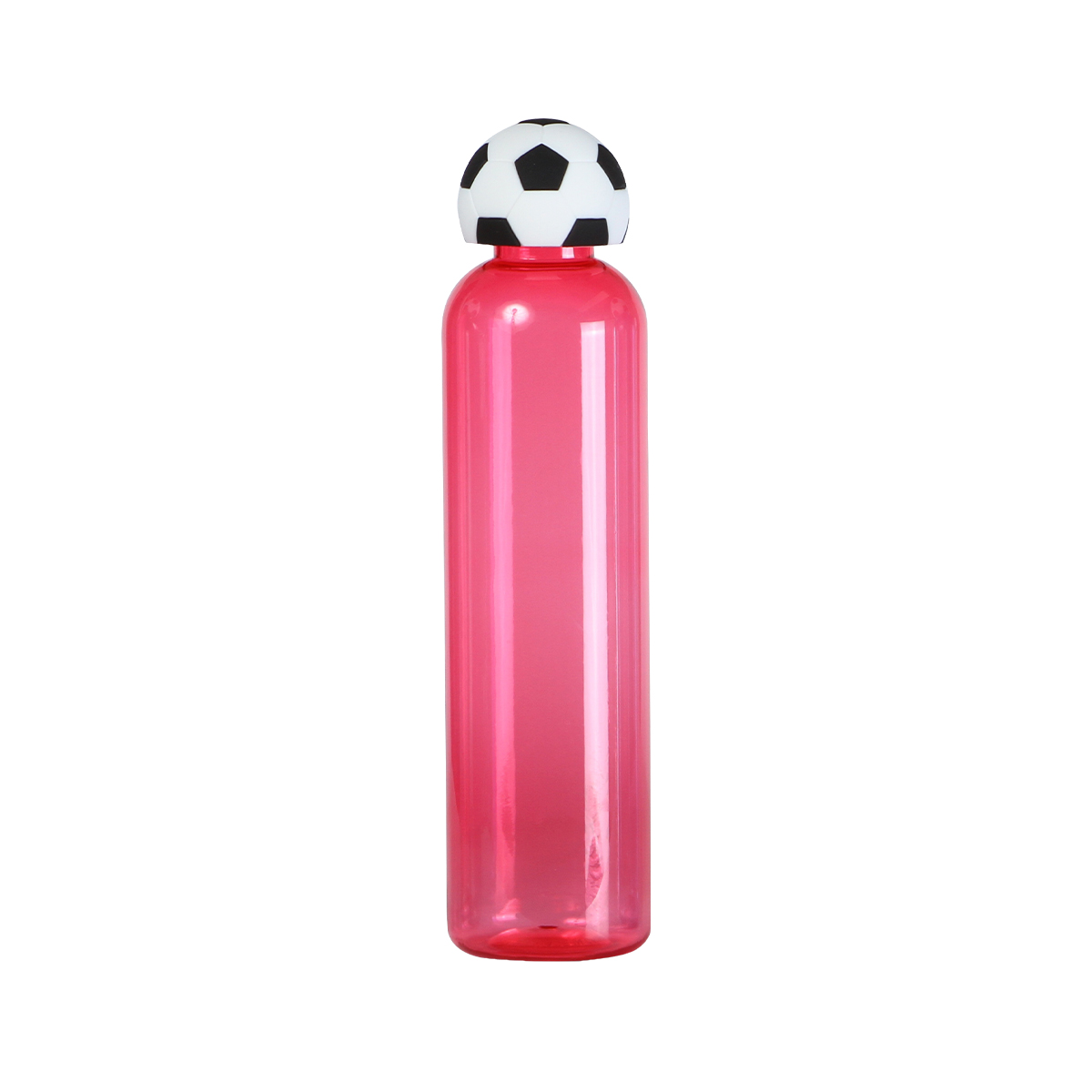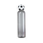 Esta botella de una pared está fabricada en PET, con una estructura ligera y resistente que mantiene su forma. Su cuerpo presenta un diseño cilíndrico de superficies lisas. Cuenta con una capacidad de 1000 ml, ofreciendo un formato amplio y estable para contener líquidos. Incluye una tapa de rosca que incorpora un accesorio fabricado en silicón con forma de balón de fútbol, integrado de manera firme al conjunto. El diseño combina materiales durables con un acabado funcional y decorativo.