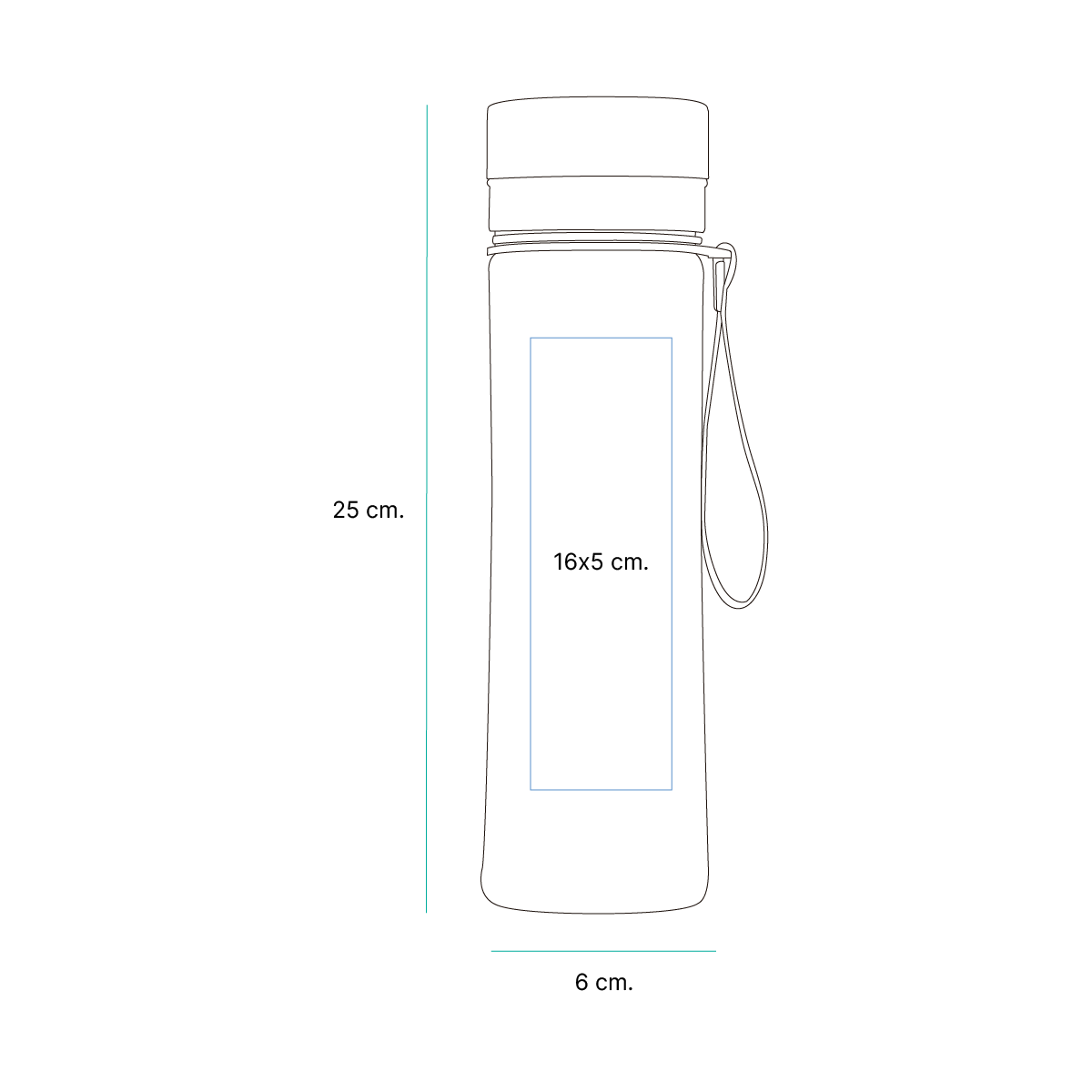 Botella deportiva fabricada en policarbonato (PC) con tapa de polipropileno (PP) y correa de tela, capacidad de 700 ml (23.5 oz).