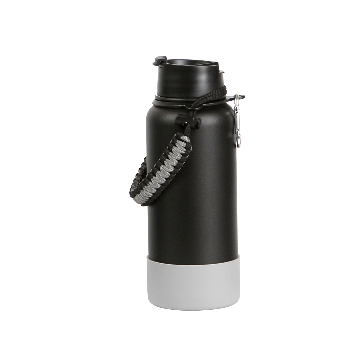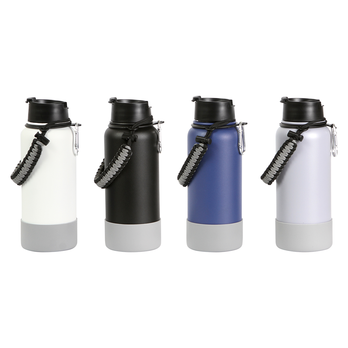 Botella deportiva, fabricada en acero inoxidable doble pared. Tapa de rosca con boquilla. Cuenta con capacidad de 1,000 ml. Incluye arnés, correa con detalles en gris y base de silicón anti derrapante.