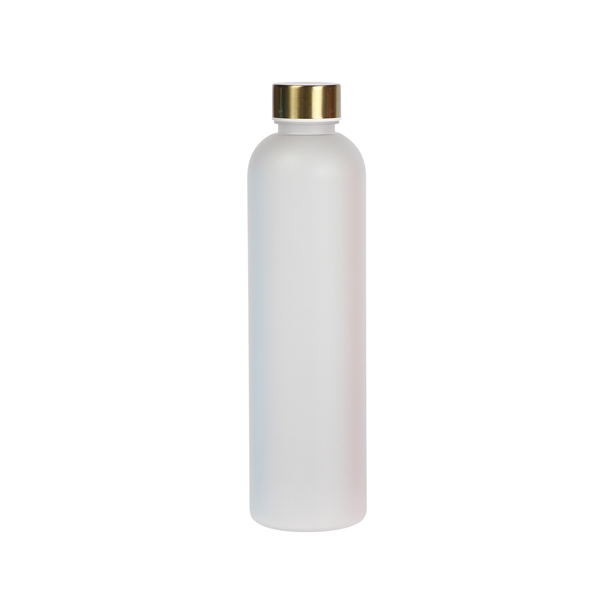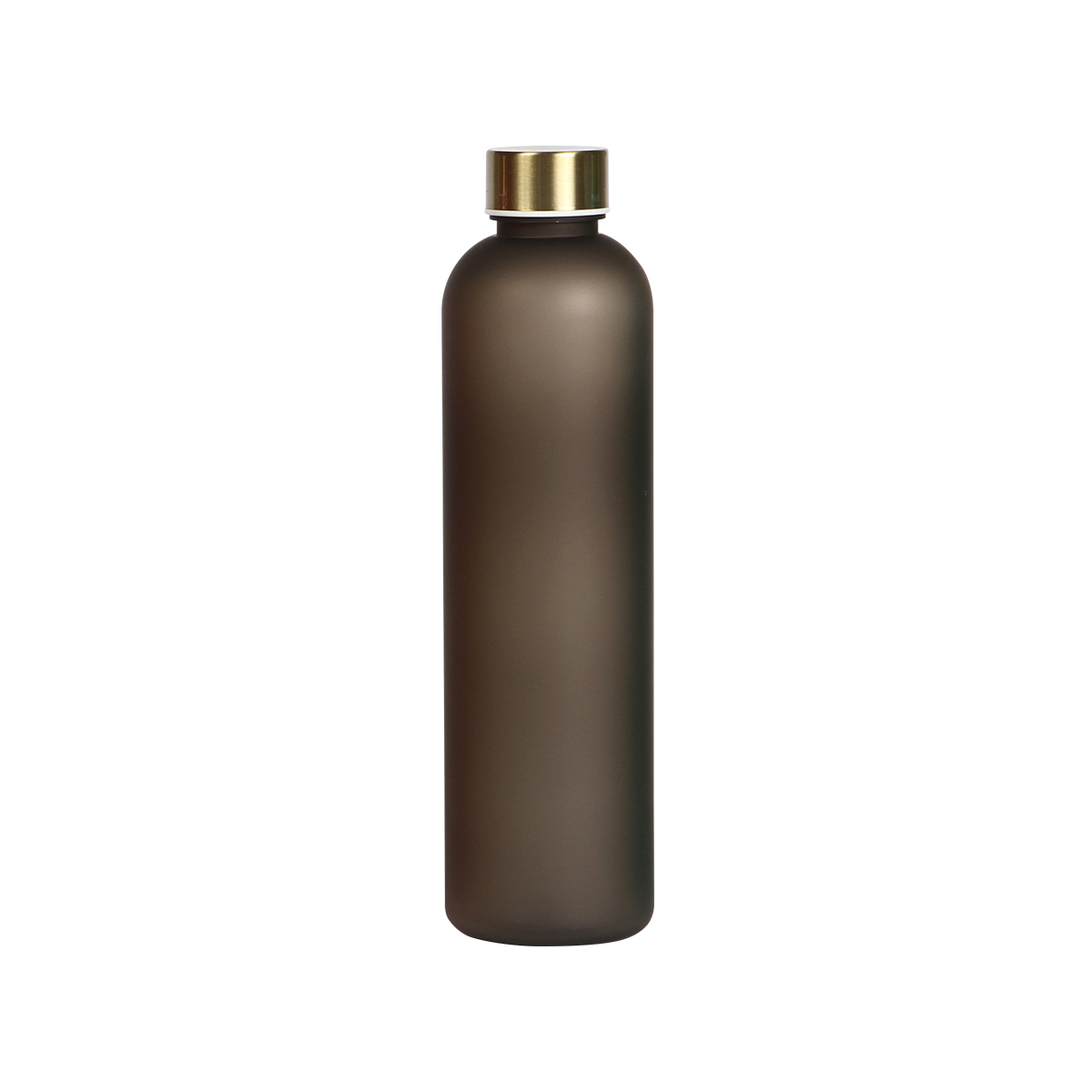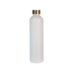 Botella de plástico mate fabricada con materiales de alta calidad libres de contaminante BPA, con tapa dorada, capacidad de 1 litro, terminado mate. Incluye caja individual