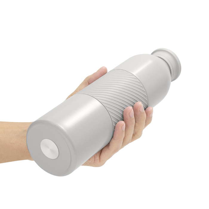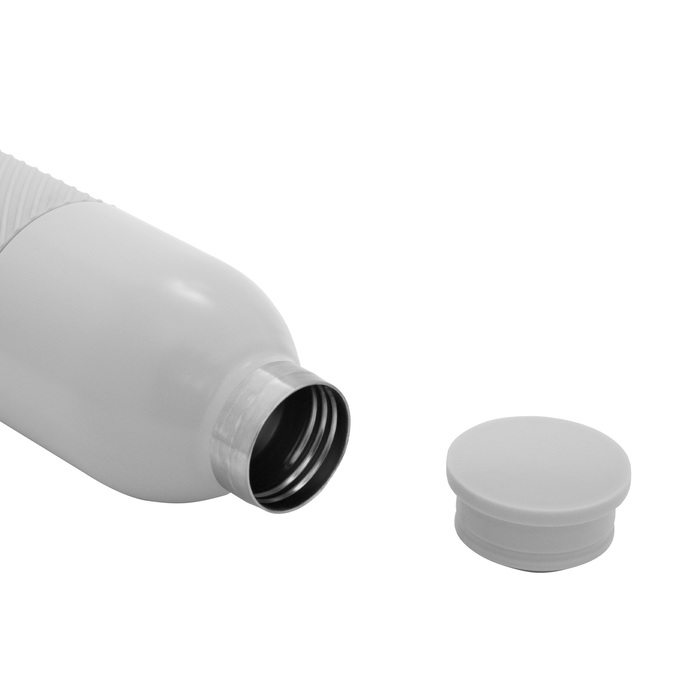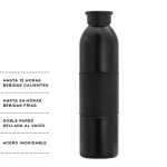 Capacidad 600 ml. Acero inoxidable. Botella doble pared, sellada al vacío. Interior en acero 304 y exterior en acero 201. Grip de silicona texturado para mejor agarre. Pintura acabado mate. Tapa de polipropileno y acero inoxidable 201. Presentación en caja de regalo kraft.