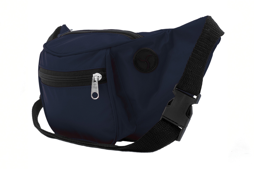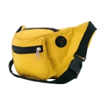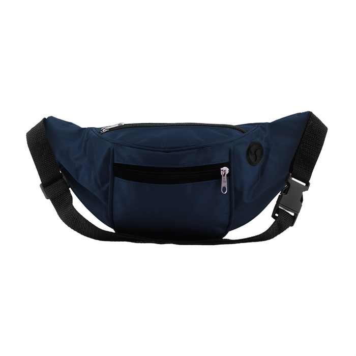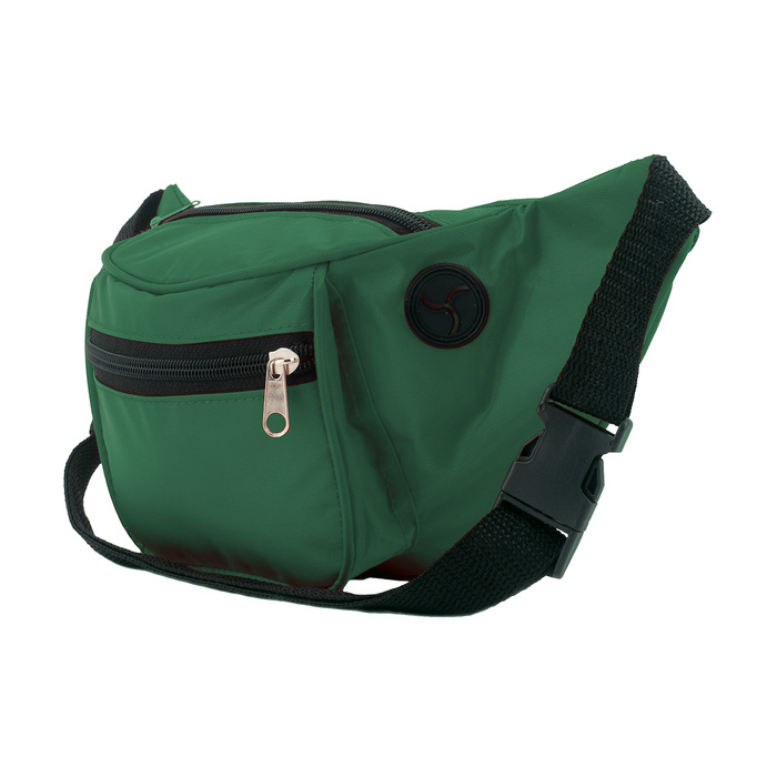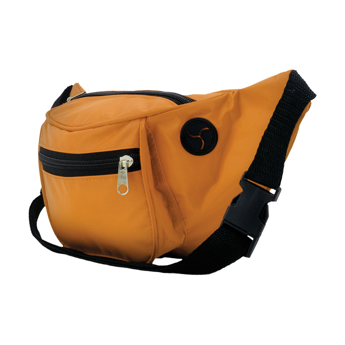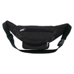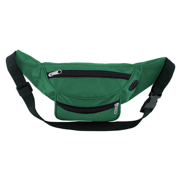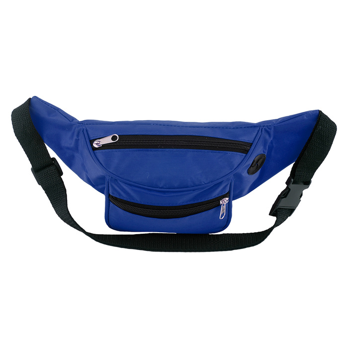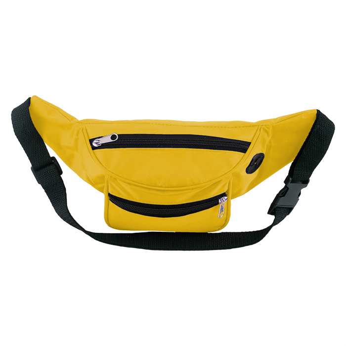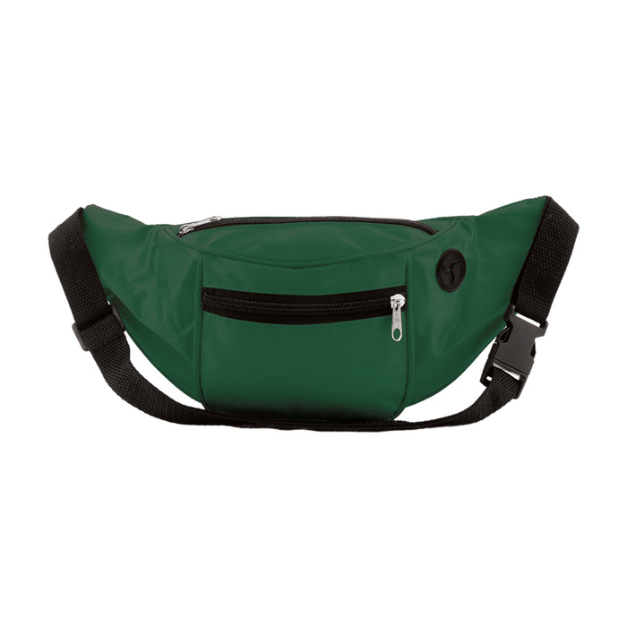 Cangurera de 2 bolsillos. Salida para audífonos. Correa ajustable con herrajes plásticos. Cierres metálicos.