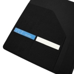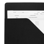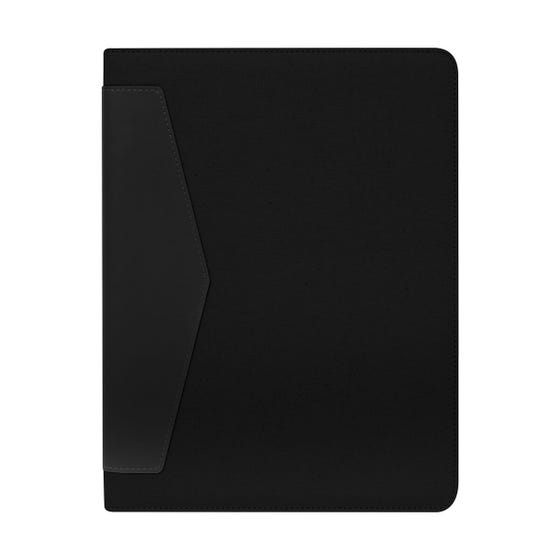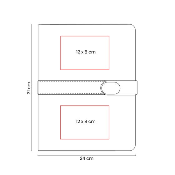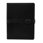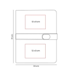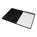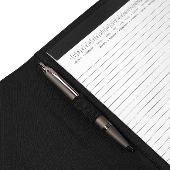 Carpeta con block de notas. Incluye 40 hojas con línea a raya para facilitar la escritura ordenada. En su interior cuenta con compartimentos para organizar documentos y un elástico interno para bolígrafo. Incluye cintillo con cierre imantado.