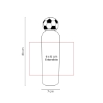 Cilindro metálico de una pared. Tapa con cierre de rosca y boquilla de plástico. Como detalle distintivo, cuenta con un balón de silicón decorativo en la tapa. Incluye caja individual.