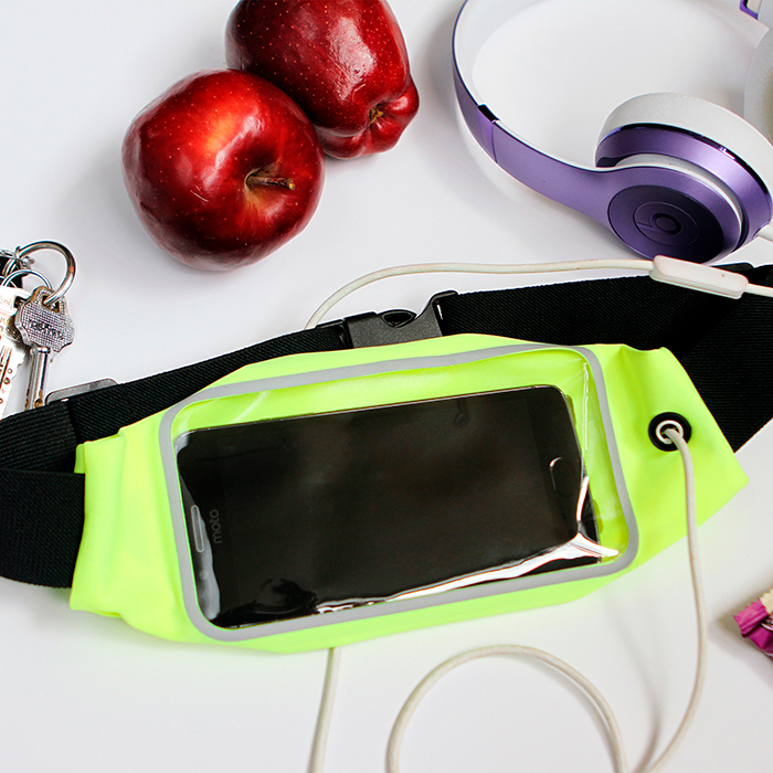 Cangurera / Riñonera ajustable, con compartimento para celular y salida para audífonos. Ligero, transpirable y flexible.