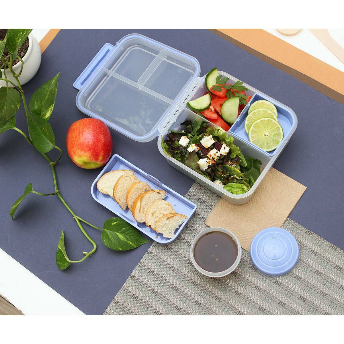Contenedor de alimentos fabricado en polipropileno y silicón. Es resistente e ideal para mantener tus comidas frescas y seguras. Con diseño compacto y práctico, es perfecto para llevar al trabajo o escuela. Tiene un asa lateral para su fácil transporte.