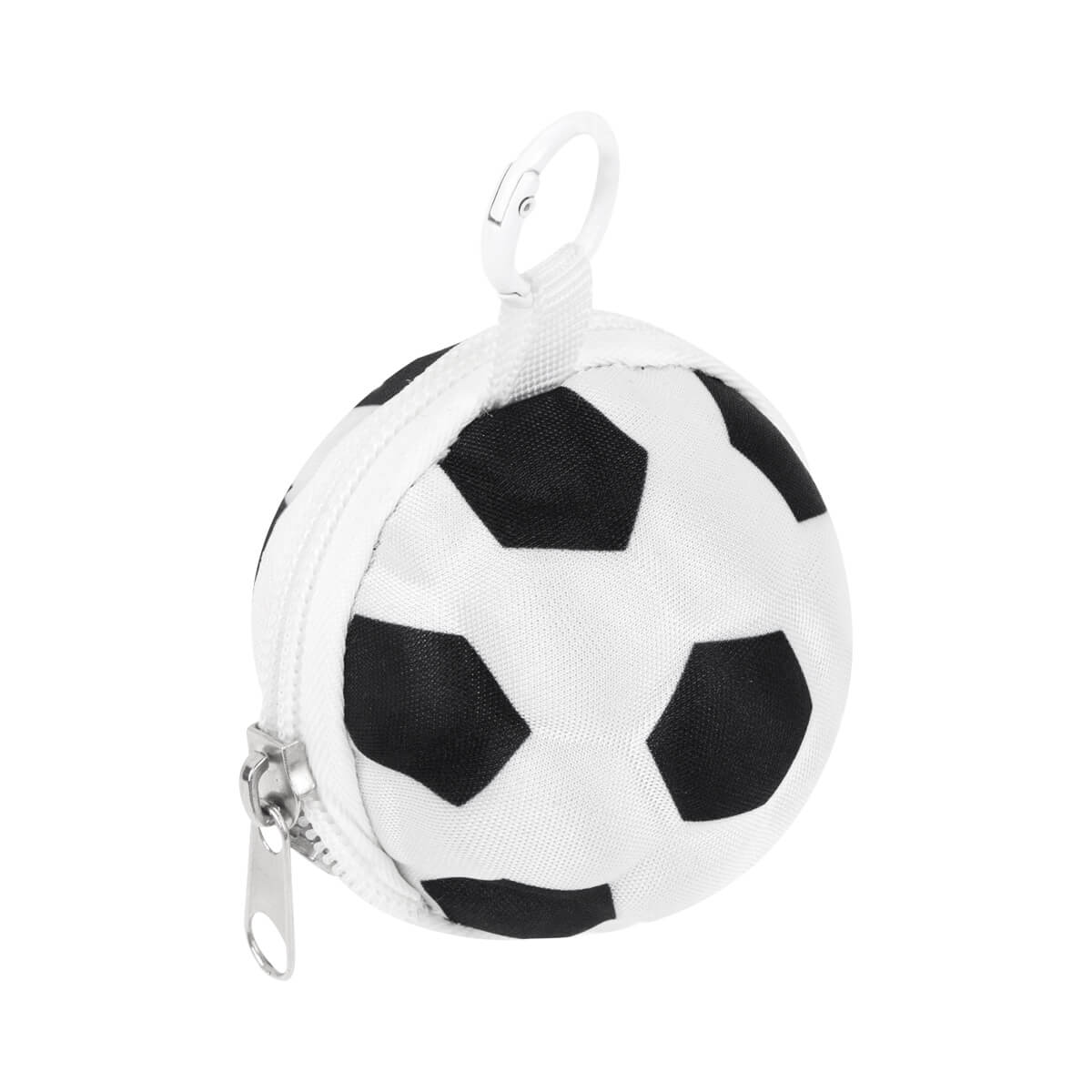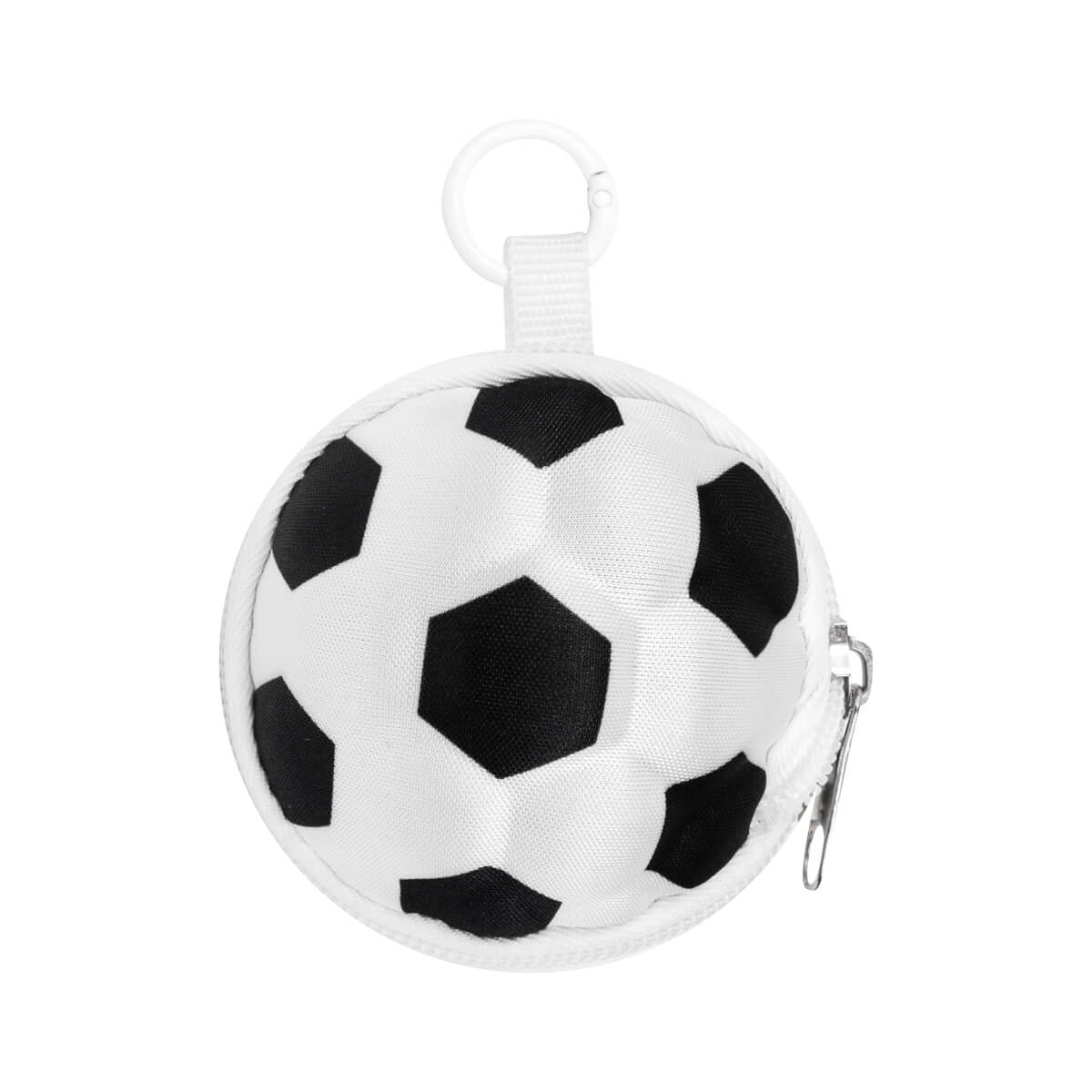 Su diseño se guarda por completo dentro de un estuche con forma de balón, lo que la convierte en un accesorio compacto y divertido. La figura de balón incluye un aro con gancho, que lo hace fácil de colgar o transportar. Ideal para llevar a la escuela o como regalo para amantes del fútbol.