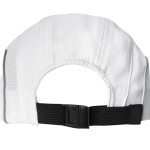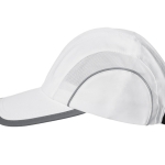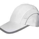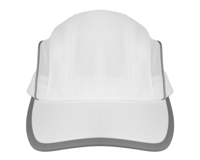 Gorra deportiva de 3 gajos, con malla transpirable y de secado rápido, con orilla de tela reflejante, cuenta con broche de plástico de seguridad y cinta de resorte ajustable.