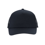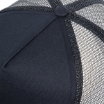 Gorra con visera. 5 paneles. Panel frontal y visera de algodón. Paneles posteriores de malla poliéster del mismo color. Botón forrado. Banda absorbente de poliéster. Cierre con broche plástico ajustable de doble cremallera del mismo color.