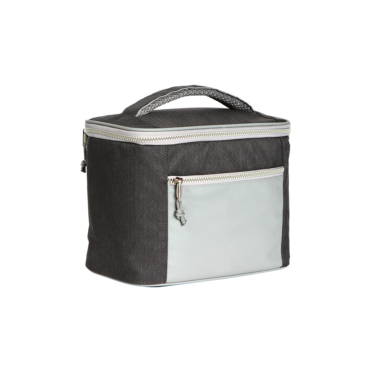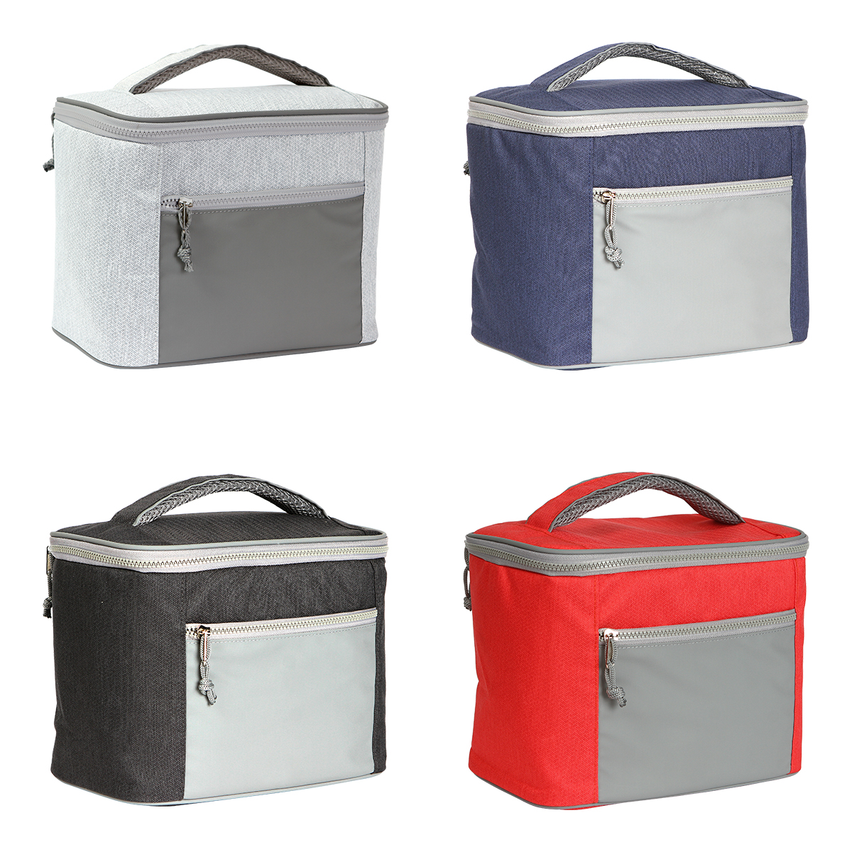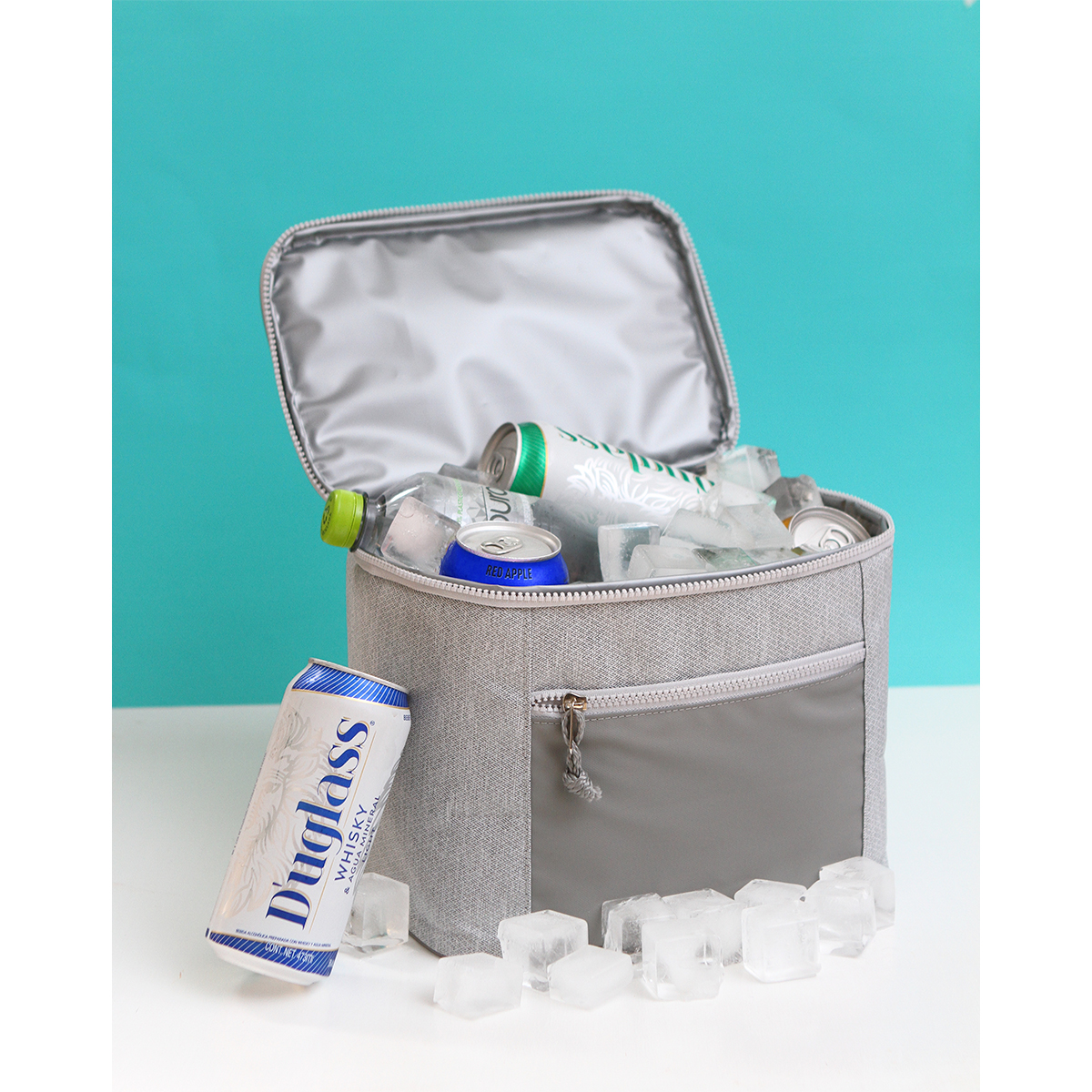 Hielera fabricada en poliéster laminado, PEVA y espuma de PE de 6 mm. Con compartimento principal, bolsillo secundario y con agarradera. Ideal para transportar y preservar frescas bebidas.