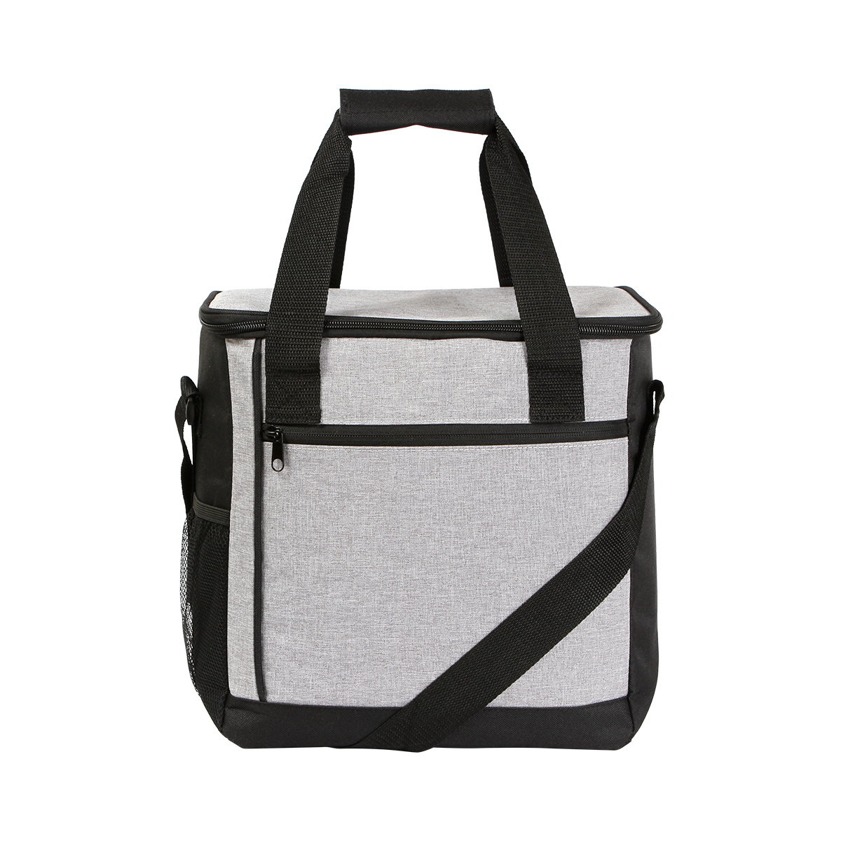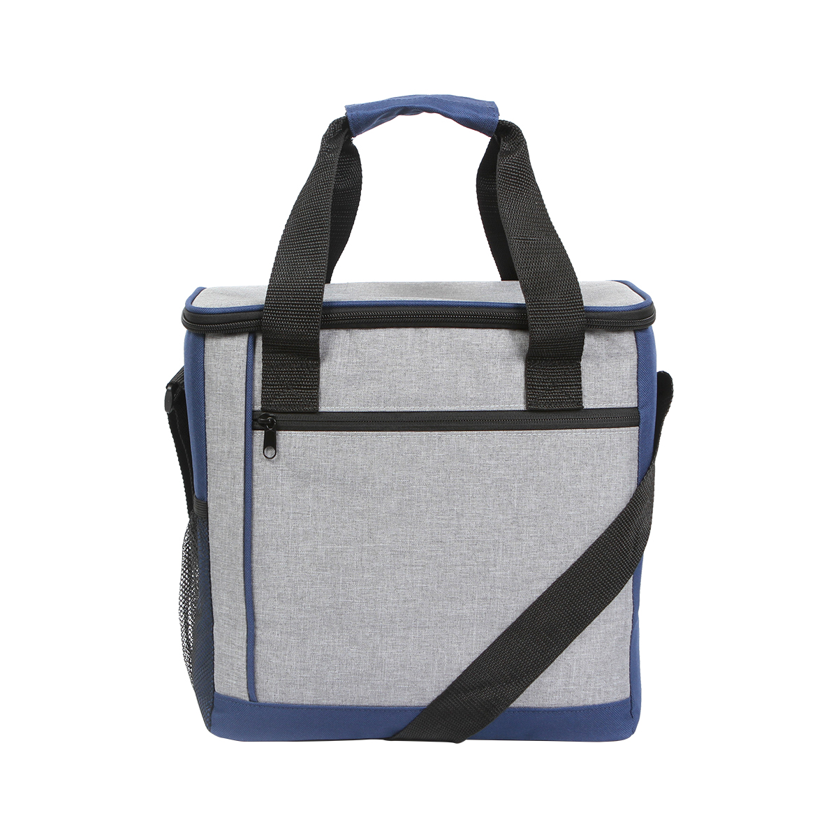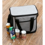 Hielera con interior fabricado en poliéster y forro elaborado en acetato de vinilo y polietileno (PEVA). Con cierre y dos asas.