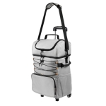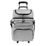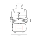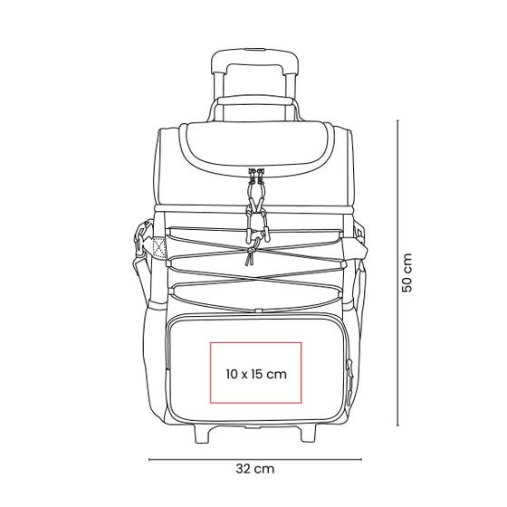 Hielera con interior plastificado impermeable. Incluye bolsillo principal con cierre, compartimento superior con cierre para facilitar su rápido acceso, bolsillo frontal para objetos adicionales y dos bolsillos laterales de malla. Al frente cuenta con un elástico ajustable. Asas laterales y asa para hombro, con altura ajustable y soporte acojinado para facilitar su transportación. Su trolley permite ajustar la altura en 3 posiciones diferentes, también es posible removerlo y plegarlo en caso de querer ahorrar espacio. Capacidad 36 latas.