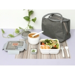 Organiza y conserva tus alimentos de manera práctica y eficiente con este juego de contenedores para alimentos, diseñado para ofrecer versatilidad y comodidad en tu día a día. Además, incluye una lonchera que mantiene tus comidas frescas por más tiempo, ideal para llevar snacks, almuerzos o bebidas. Incluye un contenedor de alimentos cuadrado con dos divisiones capacidad de 1100 ml, dos cubiertos y un recipiente pequeño para salsas o aderezos, y un contenedor más pequeño ideal para sopas o pastas de capacidad de 600 ml con un cubierto expansible Fabricados con materiales resistentes y seguros, estos contenedores son perfectos para la oficina, la escuela, picnic o cualquier actividad al aire libre. Simplifica tu rutina con este set completo que combina funcionalidad y durabilidad.