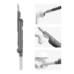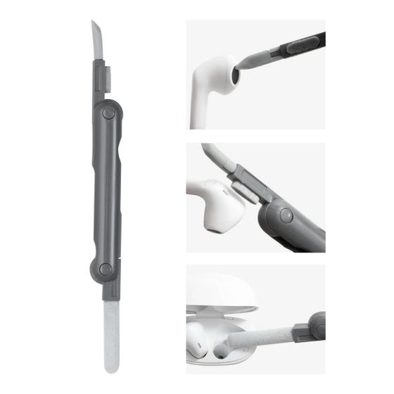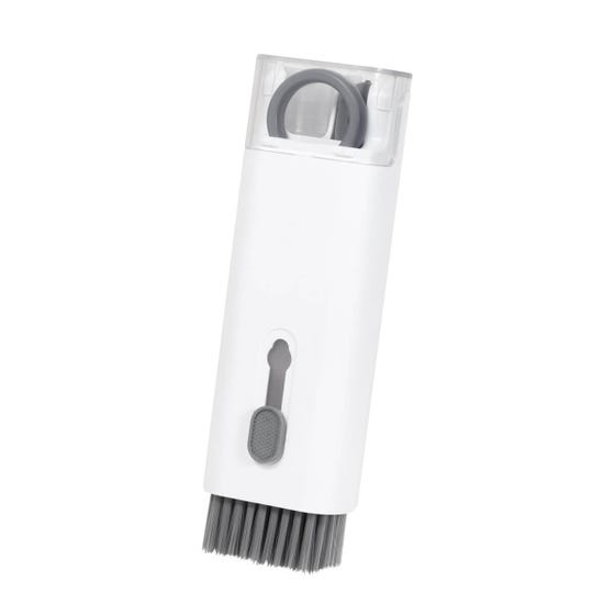 Kit de limpieza para electrónicos, gadgets, celulares y más. Incluye 5 herramientas básicas para mantener tus accesorios favoritos libres de suciedad. Cepillo plegable 3 en 1 para limpiar aurículares. Equipado con punta de silicón, cepillo de esponja y mini cepillo. Mini atomizador de 5ml con líquido limpiador de pantallas. Removedor de teclas (para teclado mecánico). Cepillo retráctil para limpiar teclados o superficies planas. Limpiador de pantallas y caja individual.
