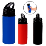 Cilindro de silicón, con tapa enroscable, boquilla abatible, agarradera en la parte superior y asa de silicón removible.