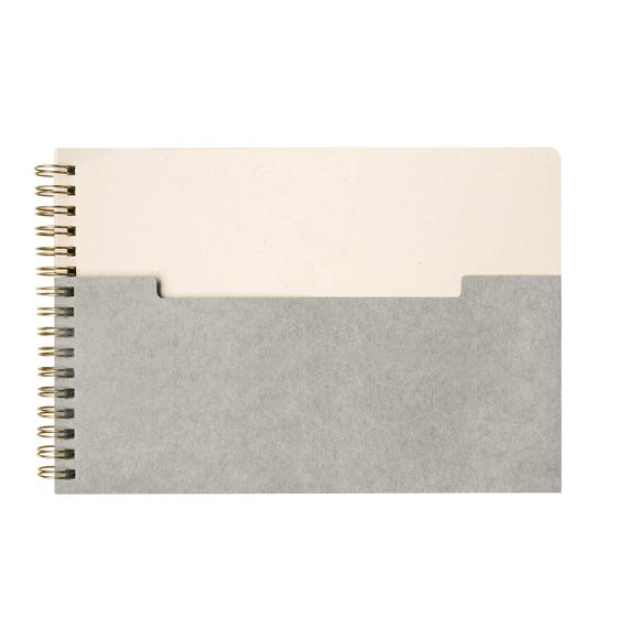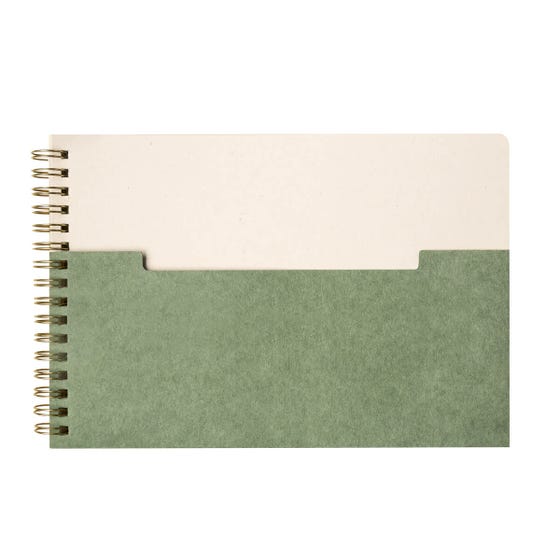 Libreta de espiral con 80 hojas a rayas. Cubierta de cartón y bolsillo frontal para llevar pequeños documentos. Fabricada con papel de algodón, es una opción ecológica y respetuosa con el medio ambiente. Su formato horizontal, la hace diferente y práctica para llevar tus notas