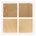 Libreta ecológica fabricada en papel kraft reciclado con lomo de corcho natural. Cuenta con 72 hojas: 40 a raya y 32 punteadas. Incluye elástico para mantener la libreta cerrada y manga de cartón.