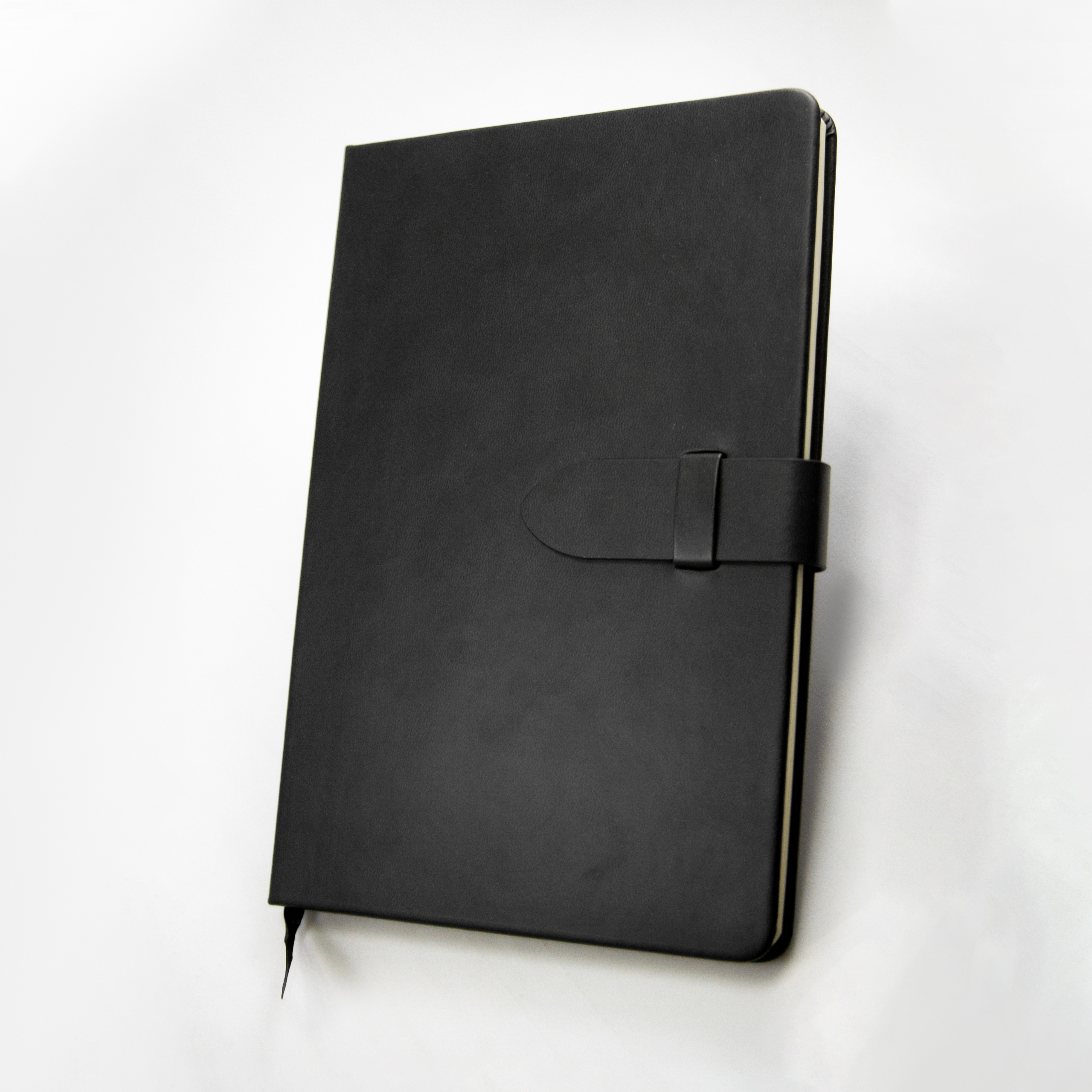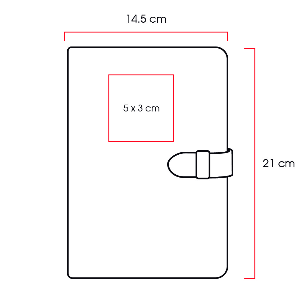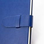 Libreta con cubierta de PU, separador, correa para cierre y 80 hojas rayadas.