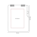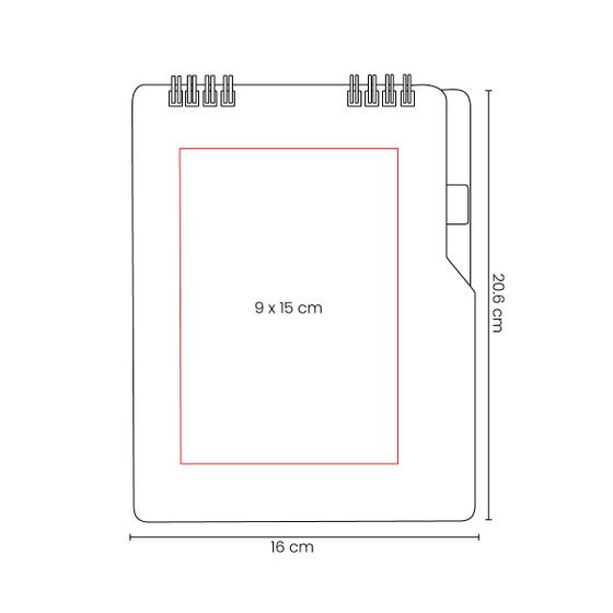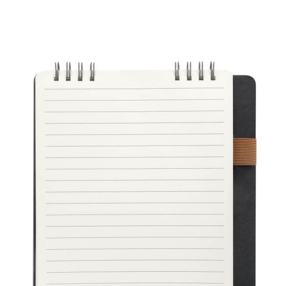 Libreta con 80 hojas a rayas. Cubierta rígida de curpiel. Innovador diseño que incluye un espiral en la parte superior, que le da un un formato único y diferente a las libretas convencionales. Incluye elástico para bolígrafo. Bolígrafo no incluído.