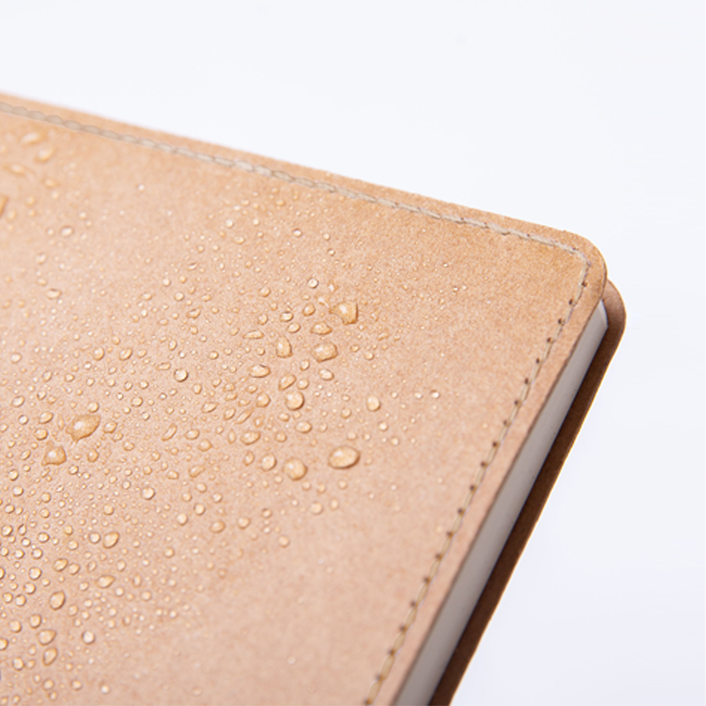 Libreta ecológica elaborada con cubierta dura de papel Kraft lavable. Porta bolígrafo y separador; con 80 hojas rayadas.