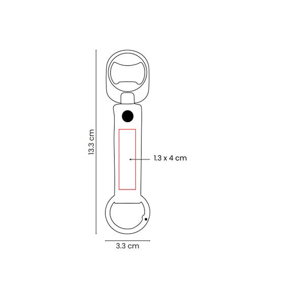 Llavero metálico con destapador, tira de curpiel y aro metálico tipo gancho. Sujeta y porta tus llaves con facilidad.