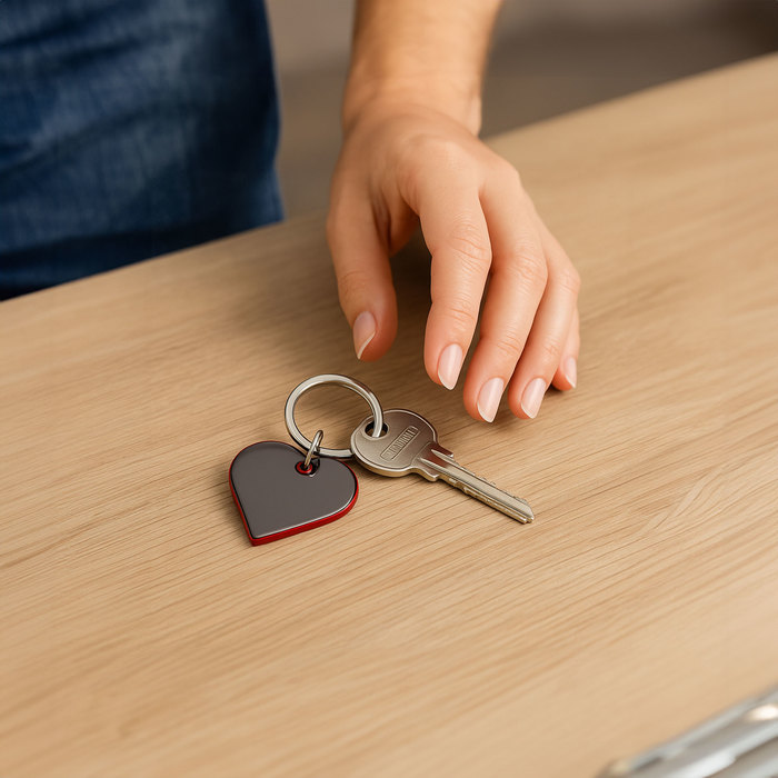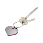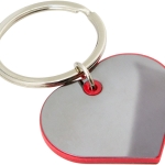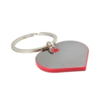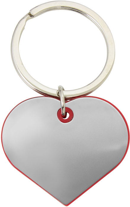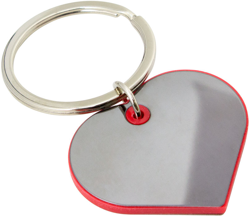 Llavero con forma de corazón. Estructura plástica de color con apliques de acero color gris gun de cada lado. Acabado brillante