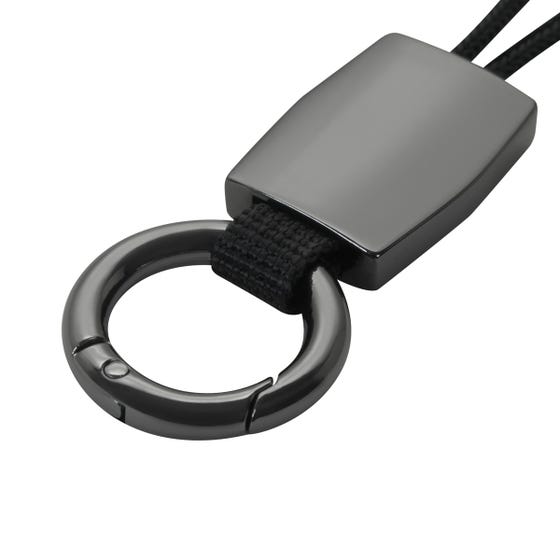 Llavero metálico con argolla tipo gancho. Correa diseñada especialmente para llaves de automóviles con ranura estrecha. Este práctico llavero te permite sujetar tus llaves de manera rápida y sencilla. Incluye caja individual.