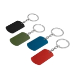 Llavero con placa metálica tipo militar. Diseño ligero, delgado y con acabado satinado.