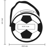 Lonchera con un compartimento interior permeable, cierre, print de balón de soccer y asa.