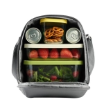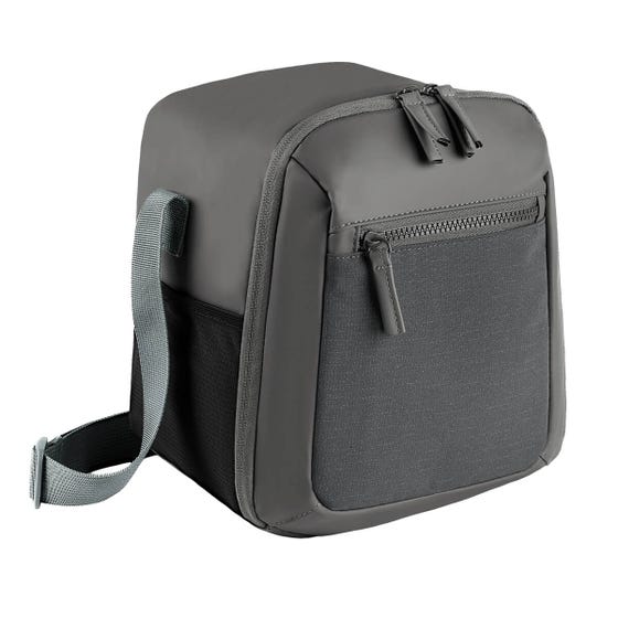 Lonchera con interior plastificado. Fabricada en curpiel, cuenta con un bolsillo principal con cierre que se abre en su totalidad, para facilitar el acceso a tus alimentos. En la parte frontal, cuenta con un práctico bolsillo adicional en poliéster, ideal para guardar utensilios o pequeños accesorios. Su formato vertical, la convierte en la opción perfecta para llevar comidas de forma organizada y con un toque moderno. Capacidad 9 latas.