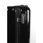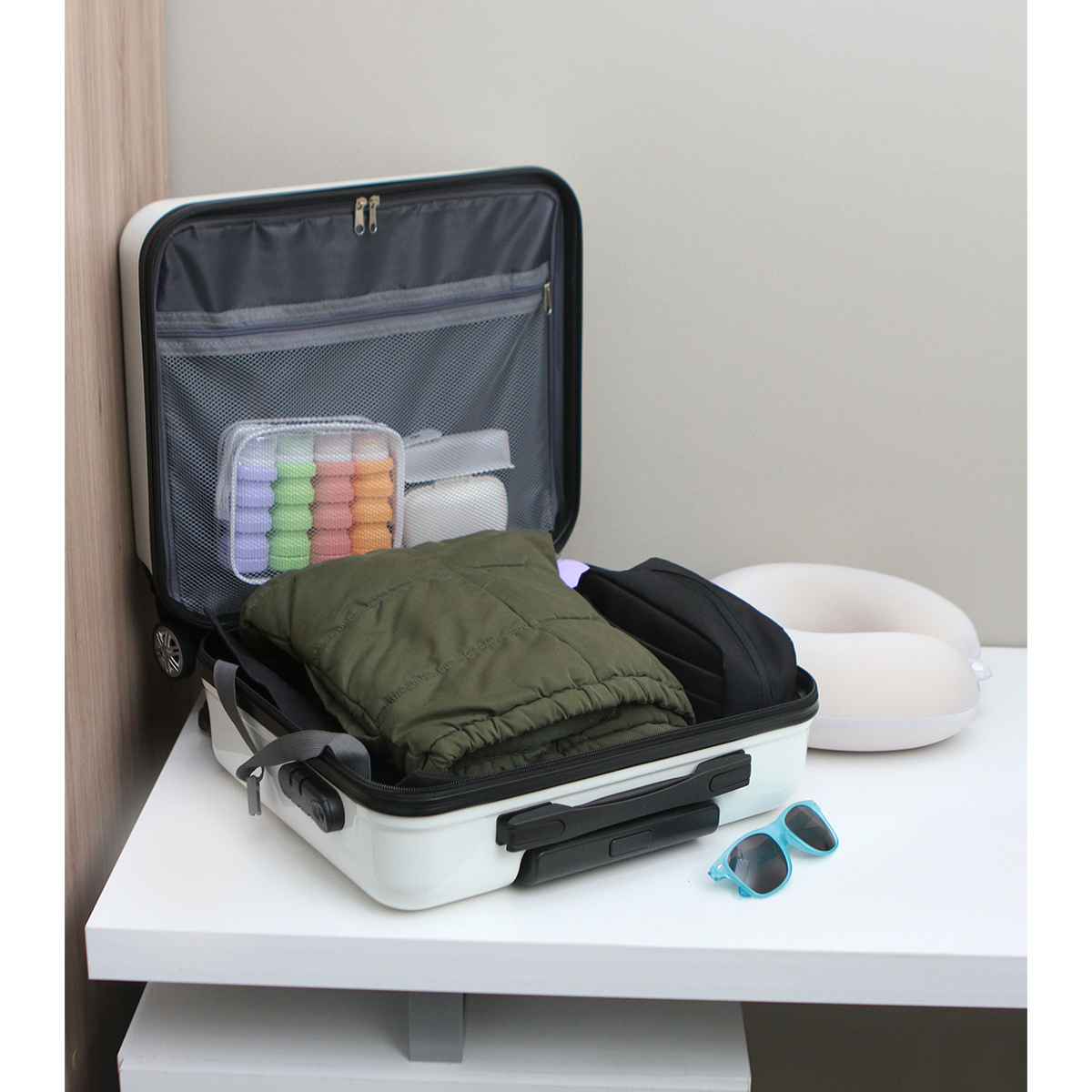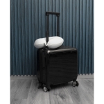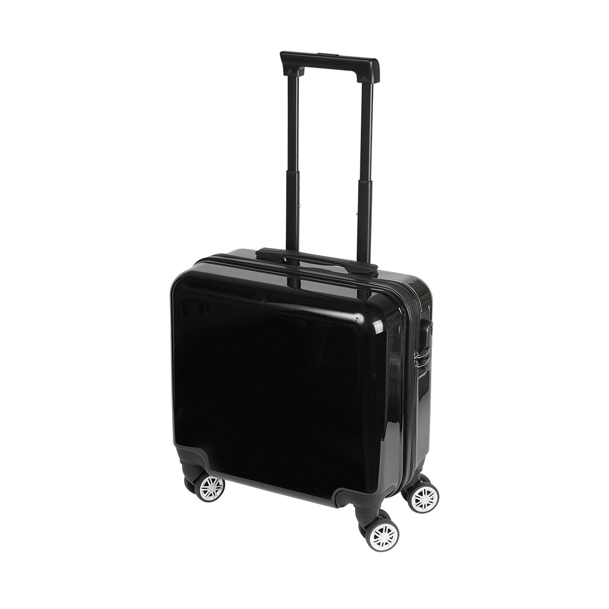 Maleta de viaje fabricada en plástico tipo ABS, con diseño liso y forro de poliester. Tiene una bolsa interna con cierre y otra más pequeña al frente de tela tipo mesh con cierre y dos contas con broche a presión para mantener seguras tus pertenencias. Esta maleta está diseñada para soportar los rigores de los viajes y proteger pertenencias de manera efectiva. Tiene 4 llantas giratorias que te permiten desplazarte sin esfuerzo en cualquier dirección y agarradera de acero desplegable en la parte superior, la cual se puede ajustar a la altura deseada. Por su tamaño la convierte en una maleta para viajes cortos e incluso para uso diario si se necesita. Su capacidad de carga es de 8KG , y 34 litros de capacidad.